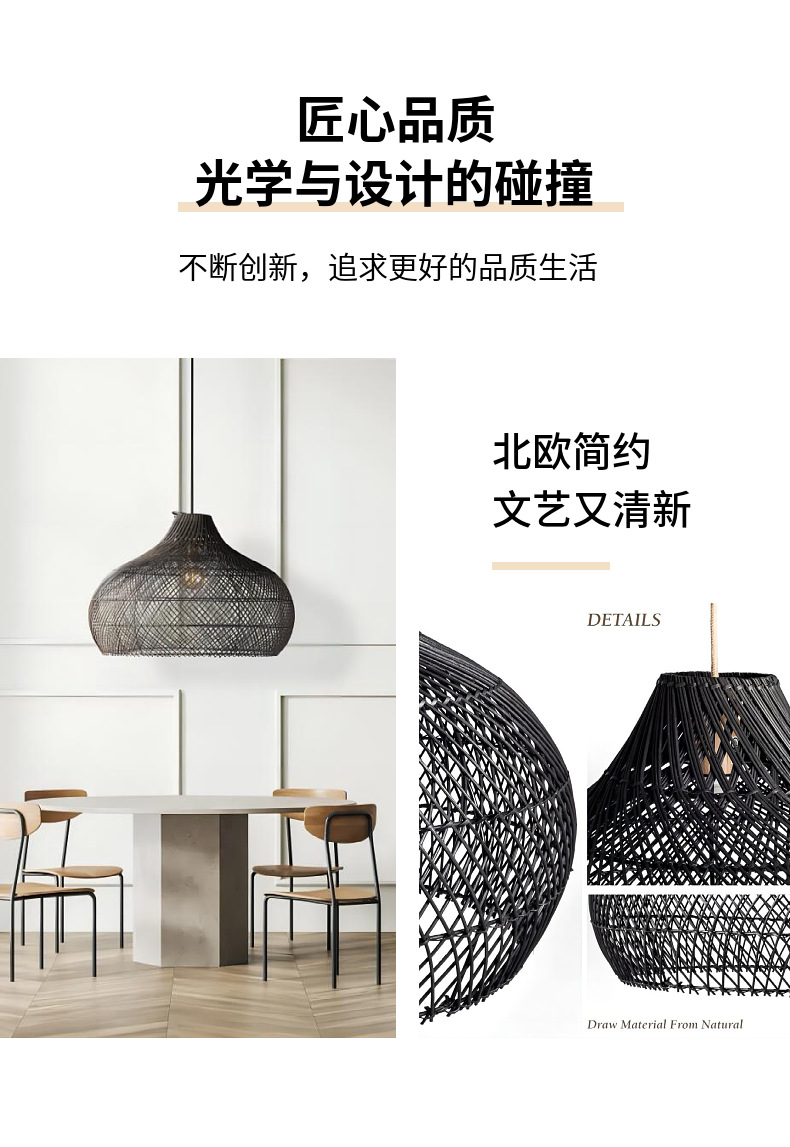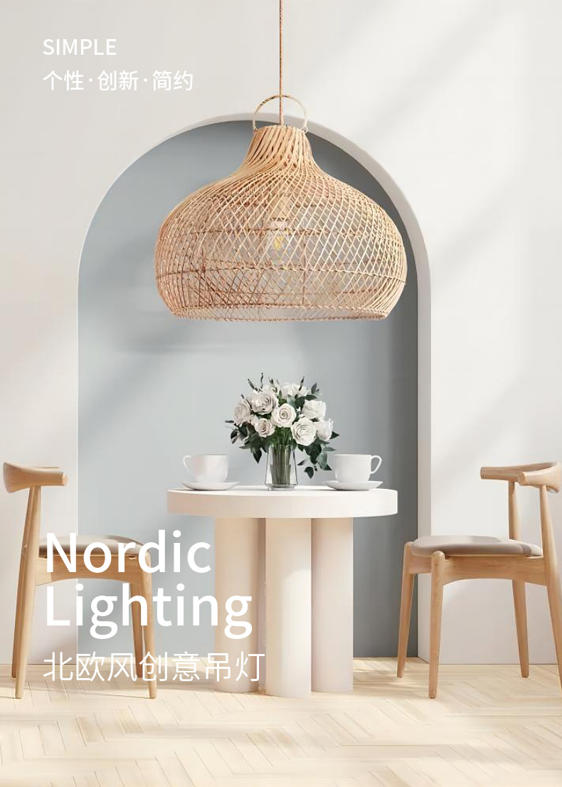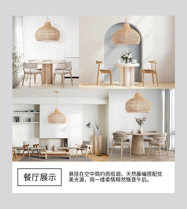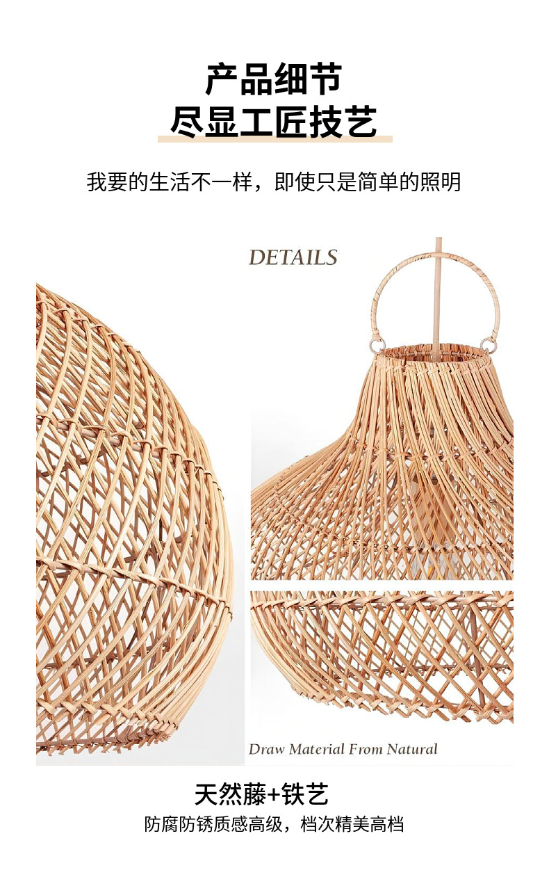 Lámparas nórdicas creativo ratán pantalla sala de estar comedor cabecera B & B sala de té araña tejida