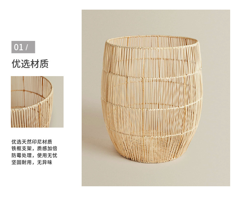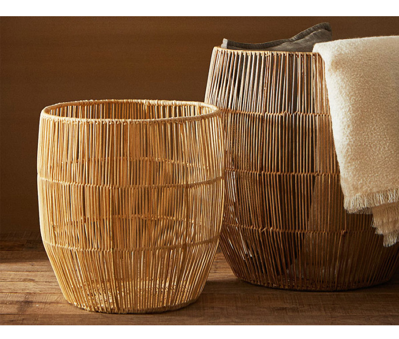 Estilo nórdico ropa sucia canasta de almacenamiento de juguete Marco de hierro canasta de ropa de ratán canasta de lavandería tejida a mano Cubo de lavandería