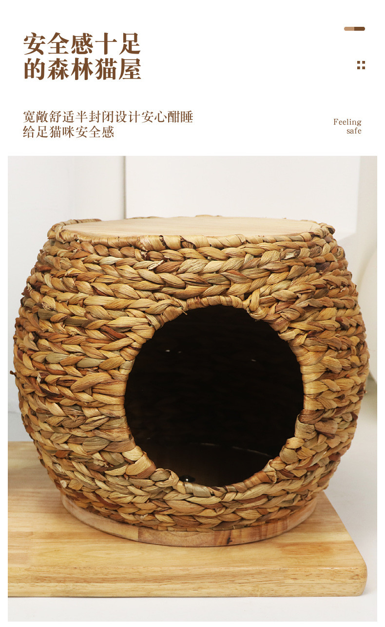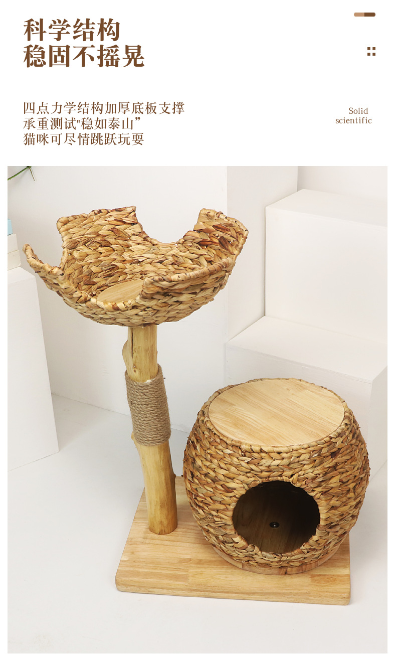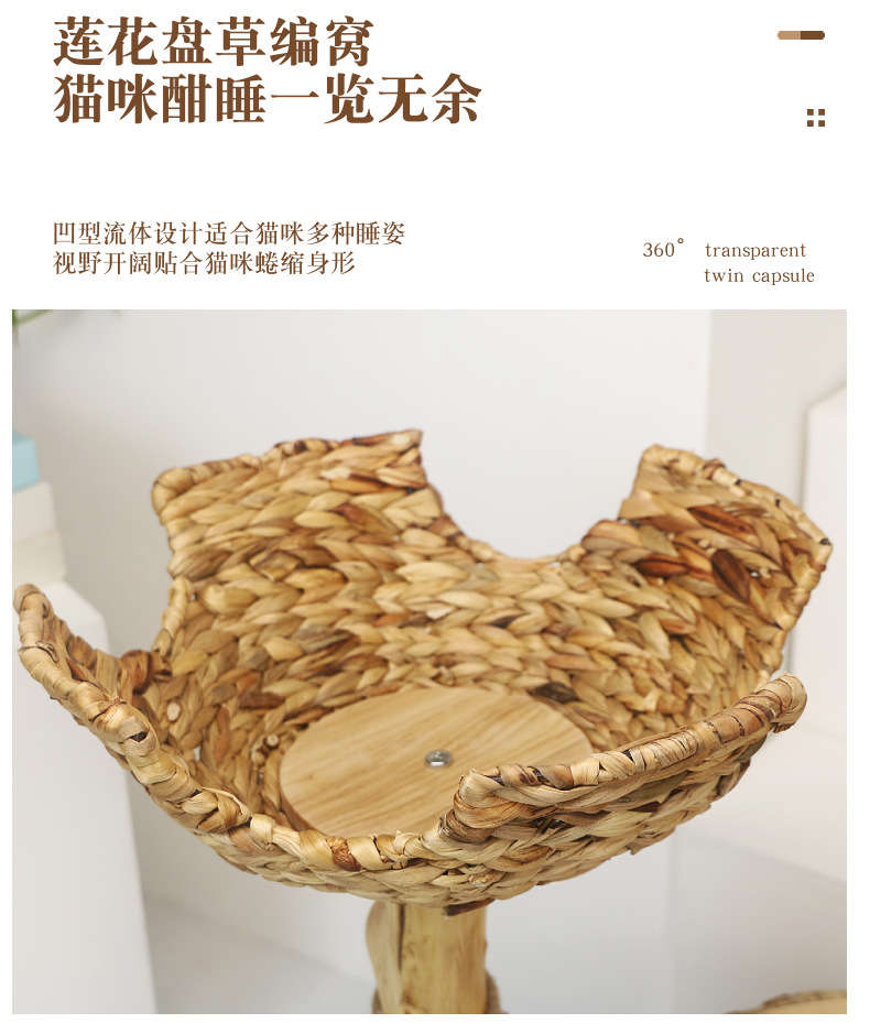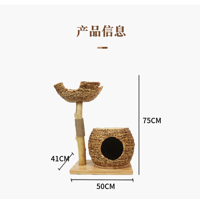Nido de gato de paja de madera maciza de lujo nido de mascotas casa de gato tablero del rasguño fuente de fábrica estable gato villa gato escalada marco