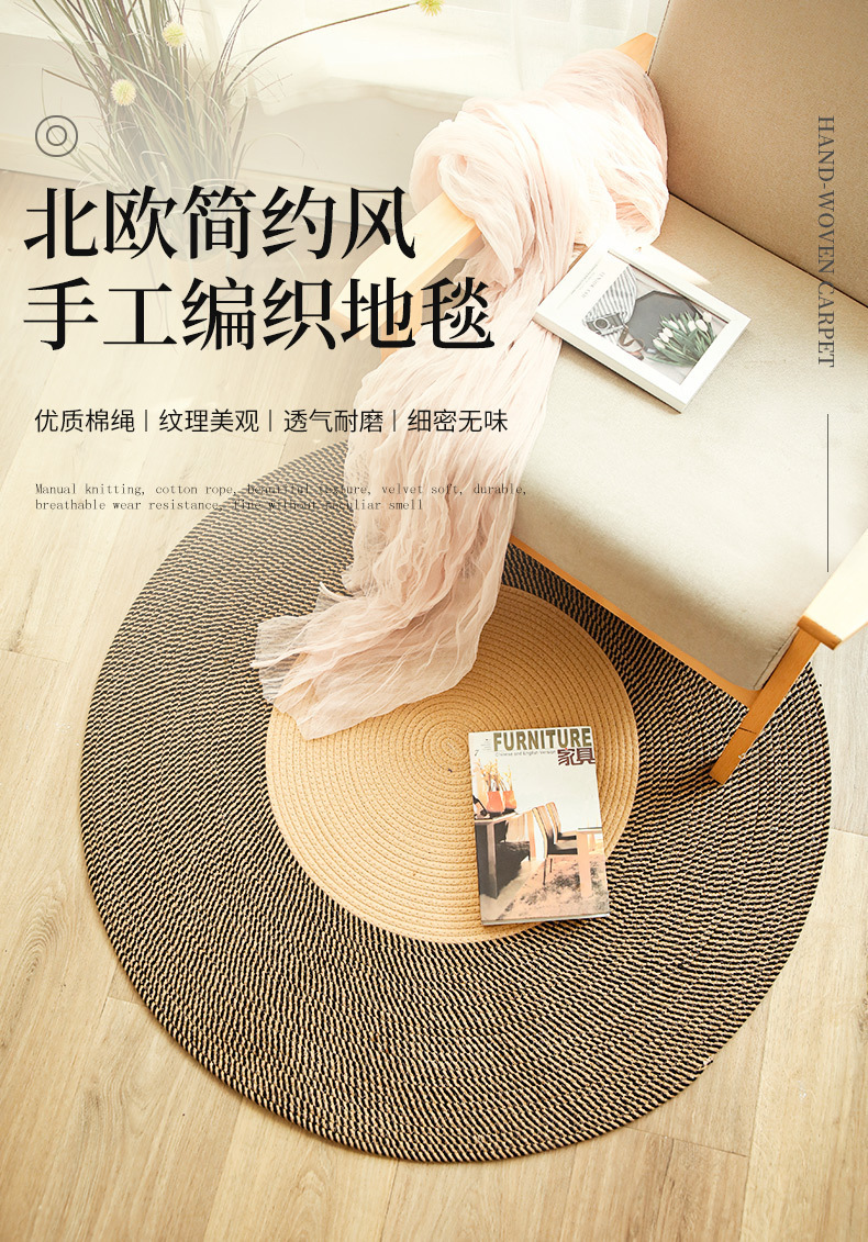 Yute nórdico trenzado alfombra de frascos tejido de cuerda balcón alfombra de ventana de techo alojamiento decoración de estudio mesa de té alfombra de mesa de té