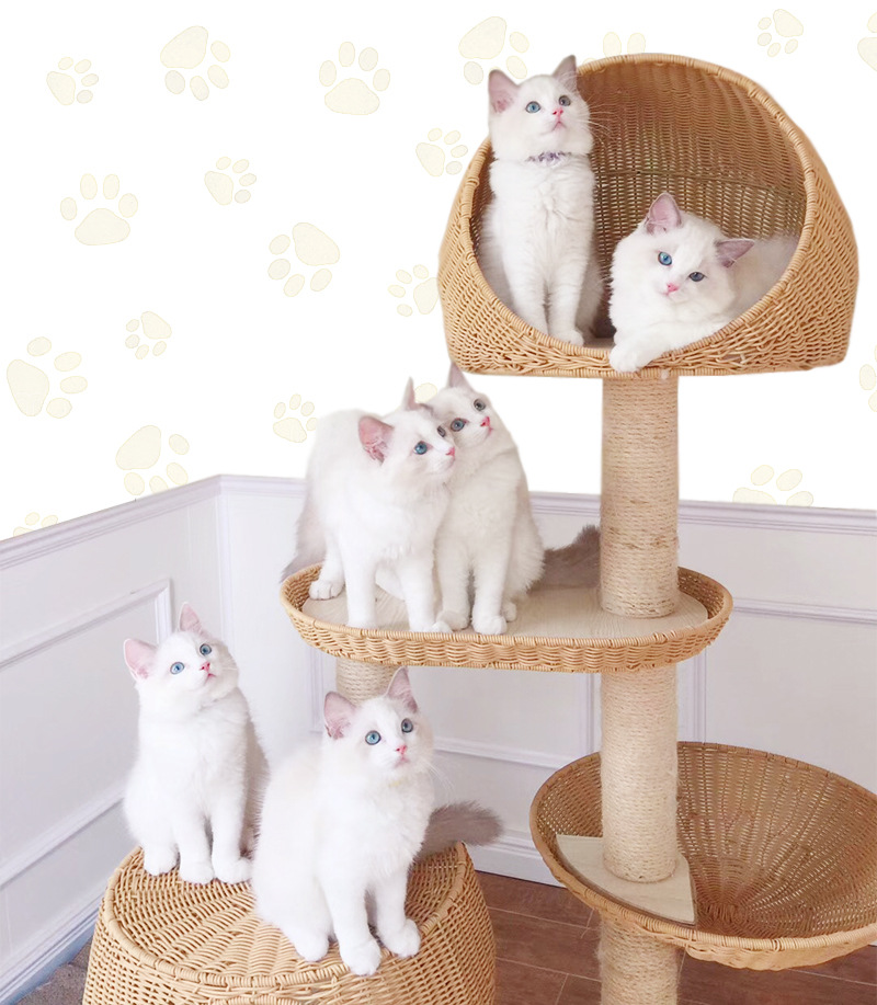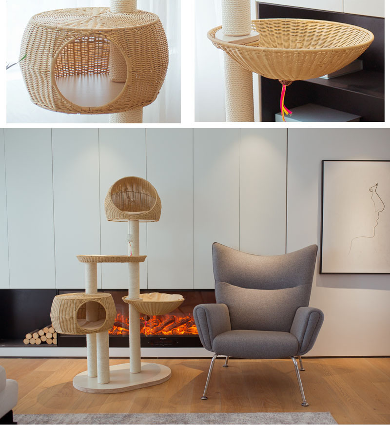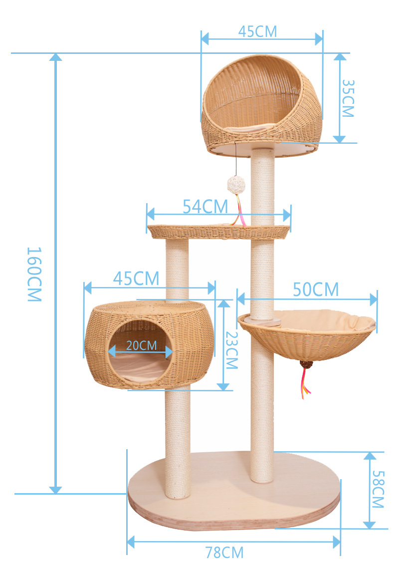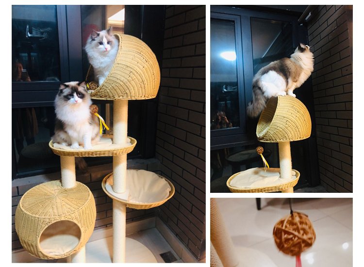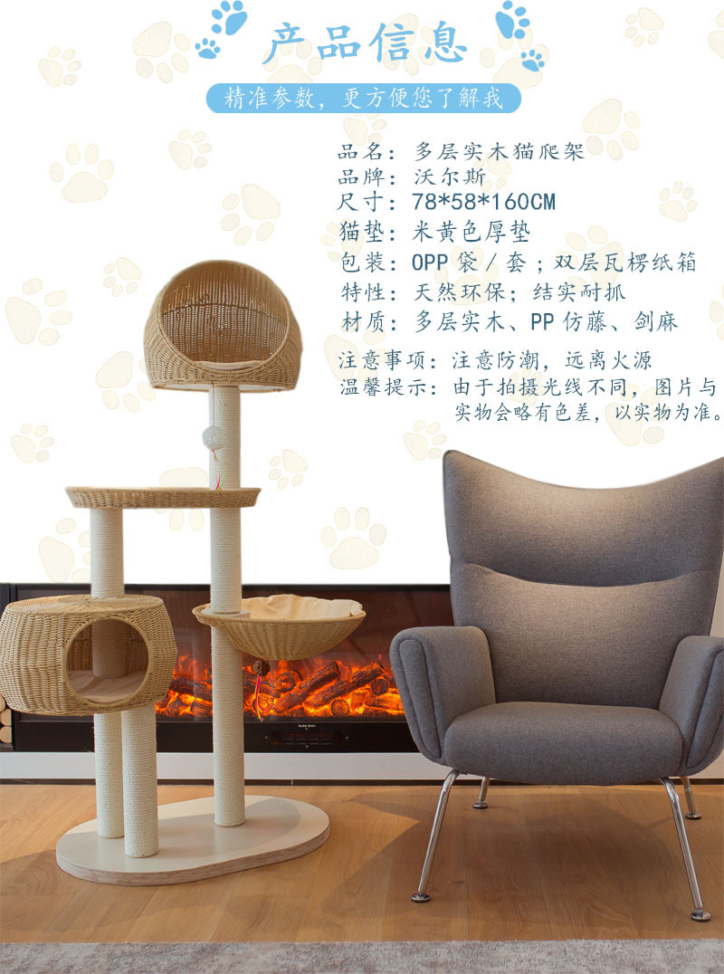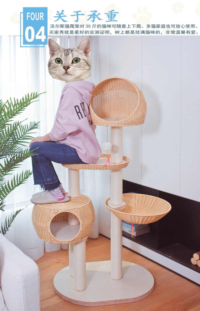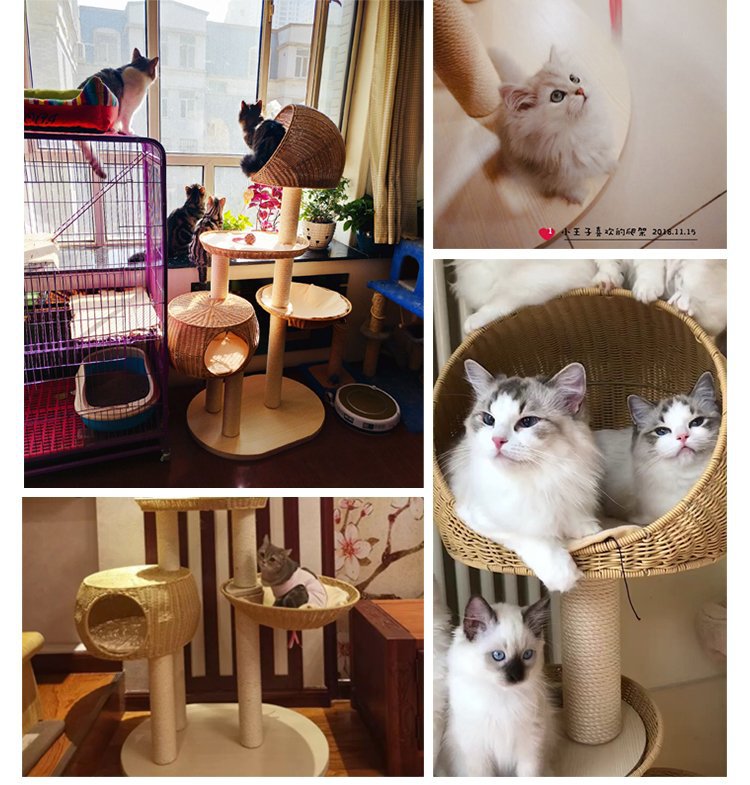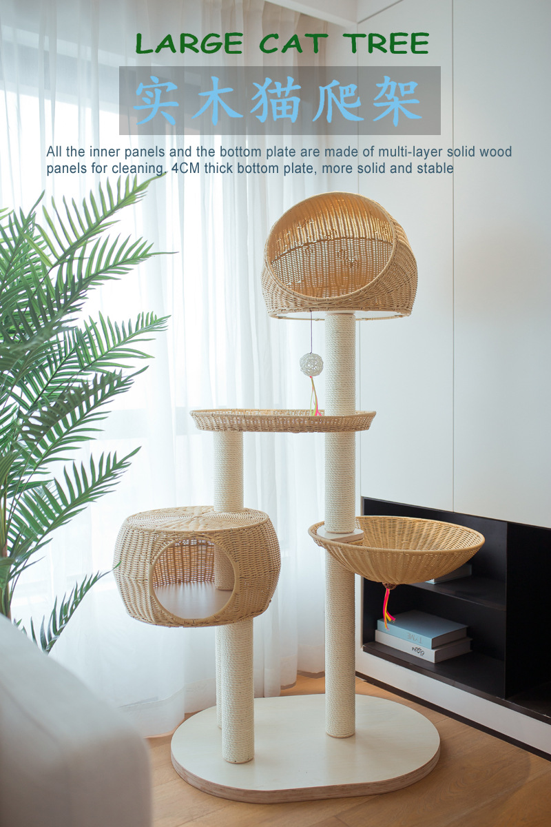 Gato que sube el marco columna de seisal gato nido integrado multi-capa de madera maciza gato árbol gato nido tejido nido gran ratán gato escalada marco