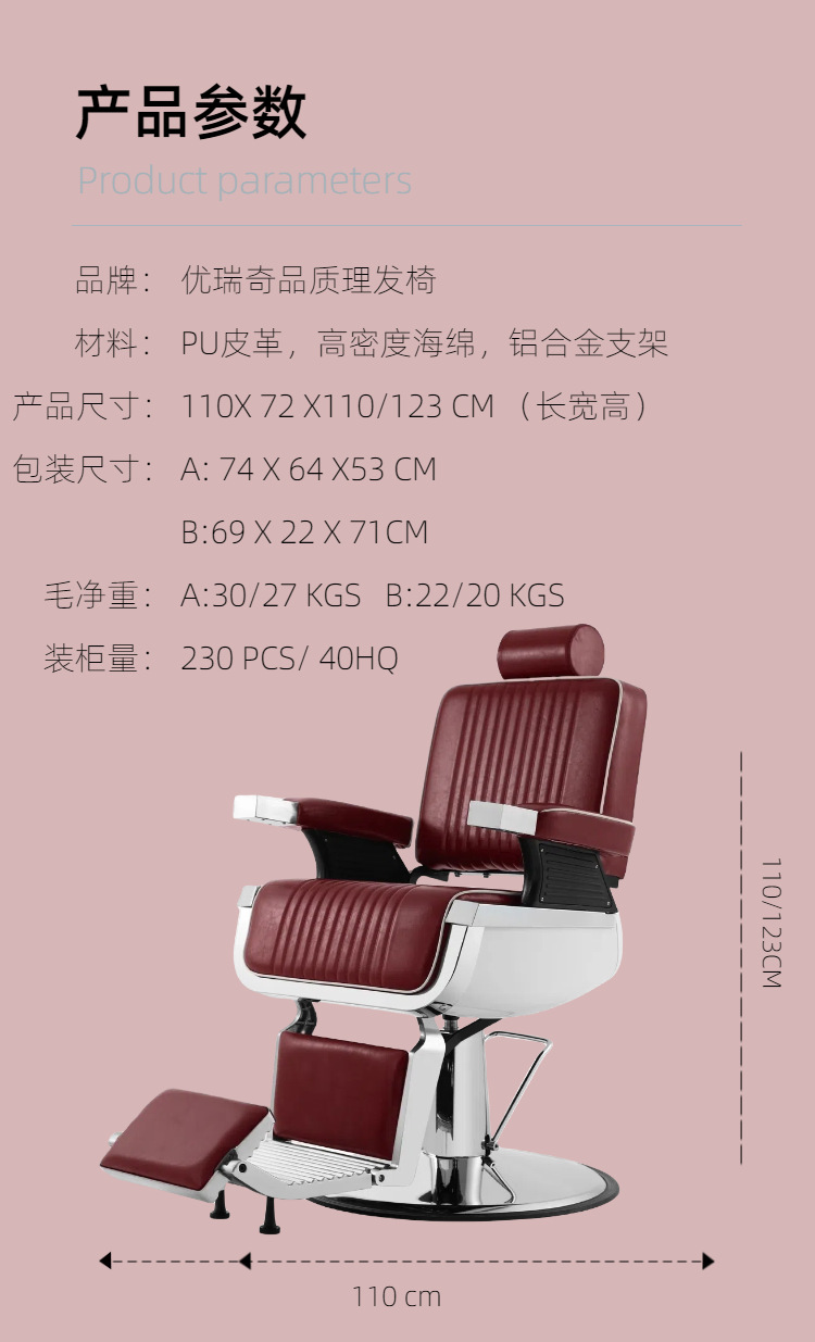 Silla de peluquería de gama alta de Yuruiqi, silla de diseño, silla de corte, silla de comercio exterior, silla de peluquería hidráulica, silla de peluquería elevadora