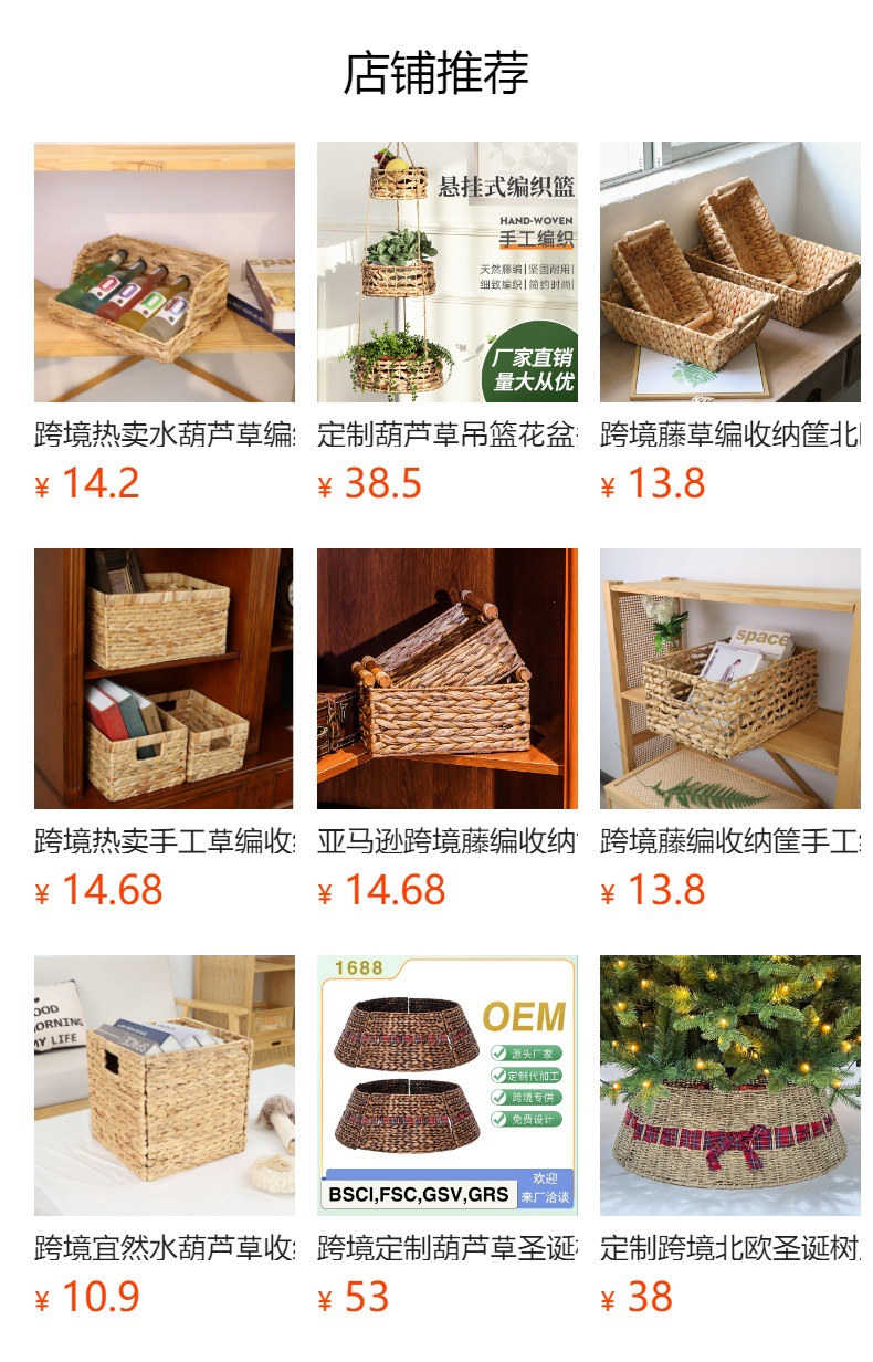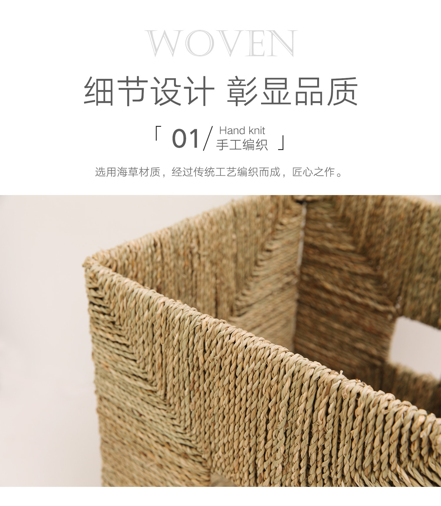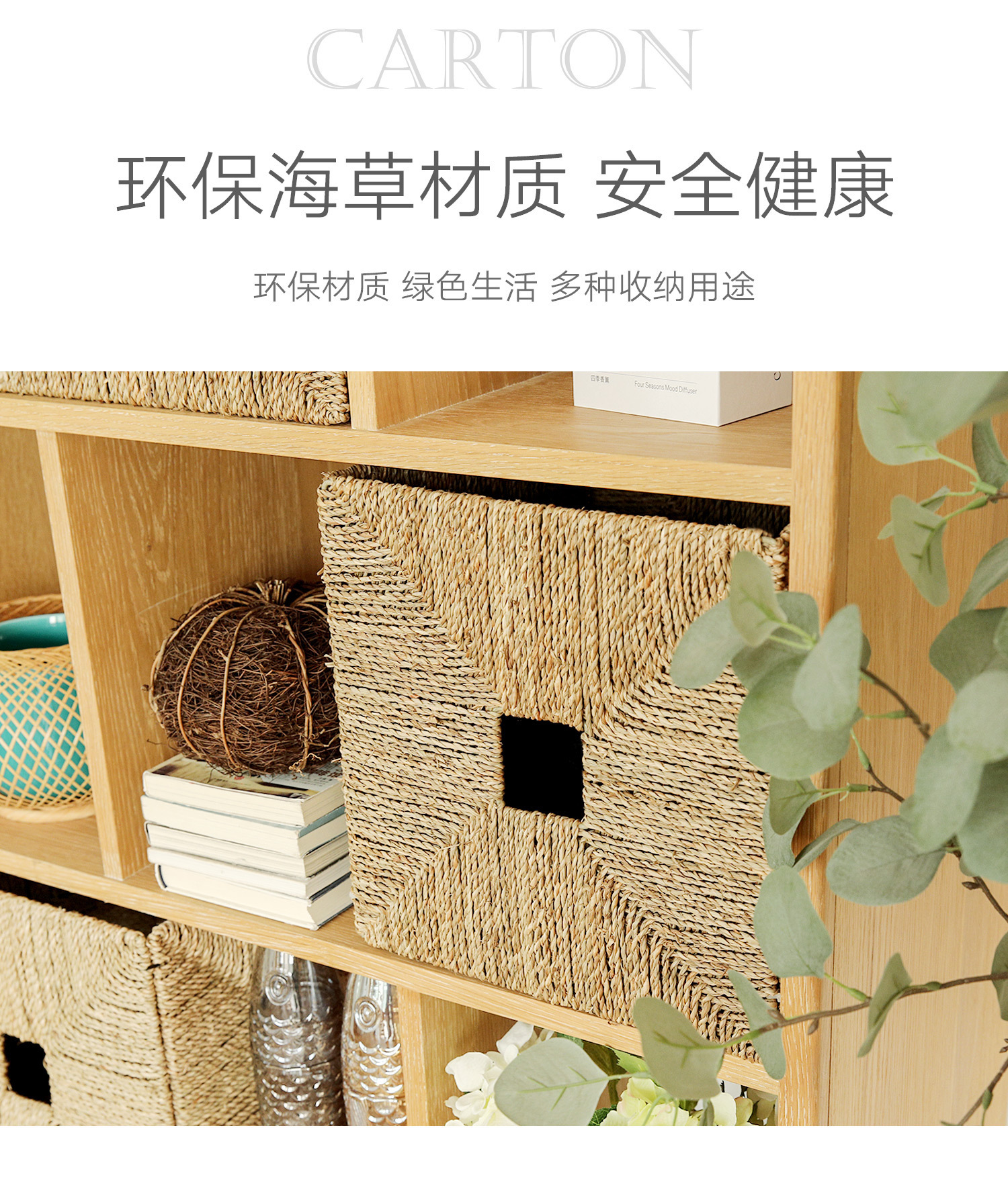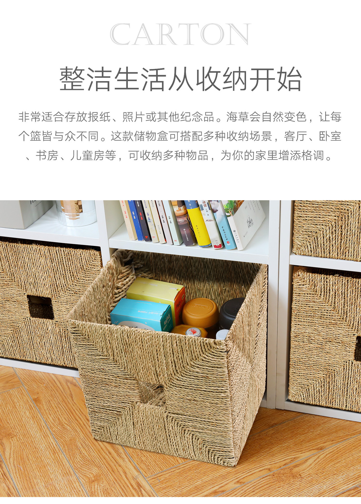 Cestas de almacenamiento de hierbas marinas personalizadas transfronterizas tejidas a mano cestas de tela de caña cestas de almacenamiento de acabado de armario simple y natural
