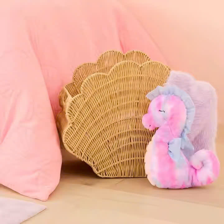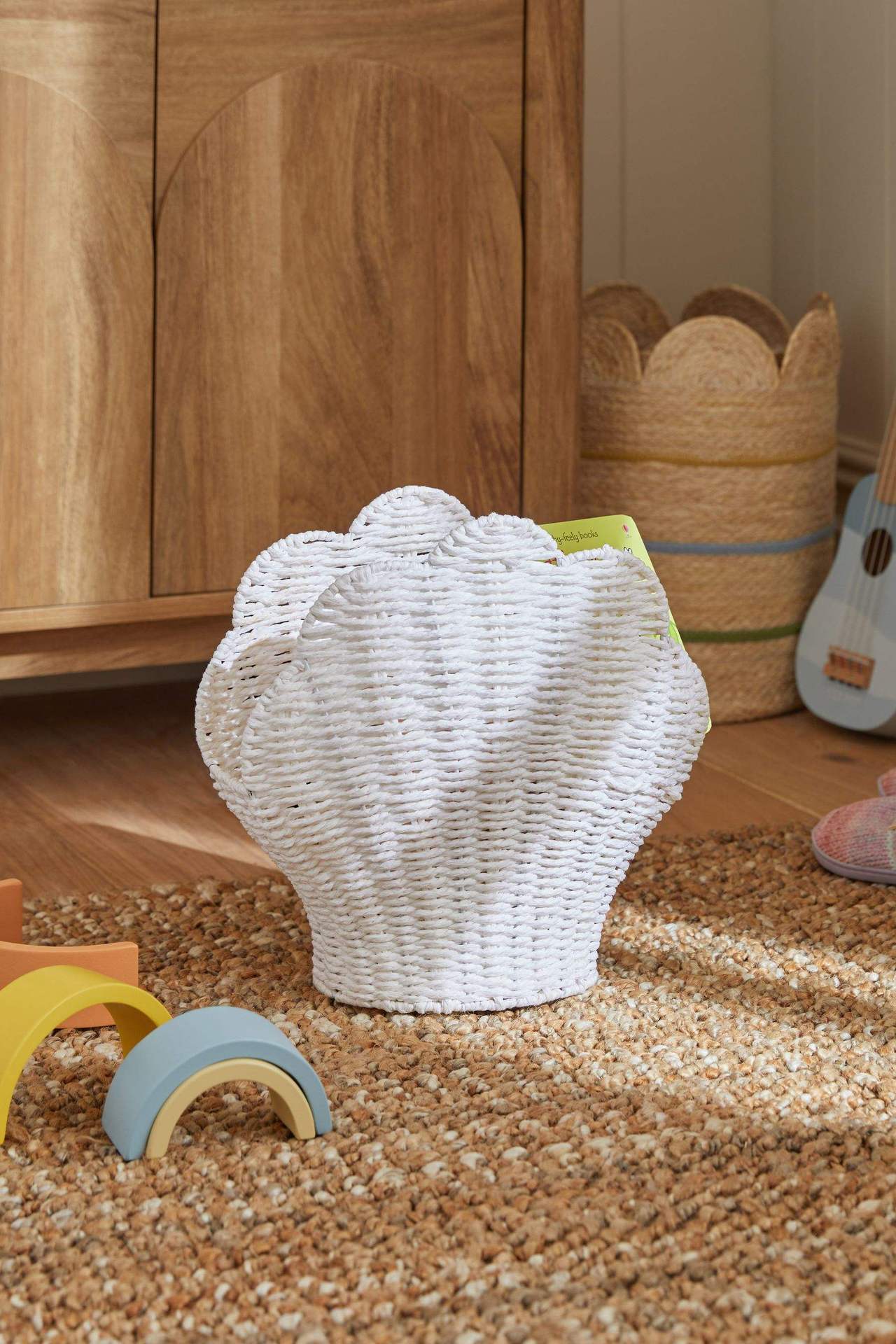 Cesta de revista en forma de concha de ratán personalizada cesta de almacenamiento tejida a mano habitación de los niños decoración del hogar cesta de almacenamiento