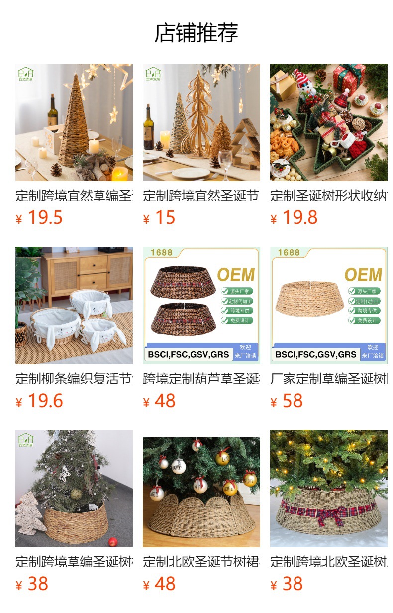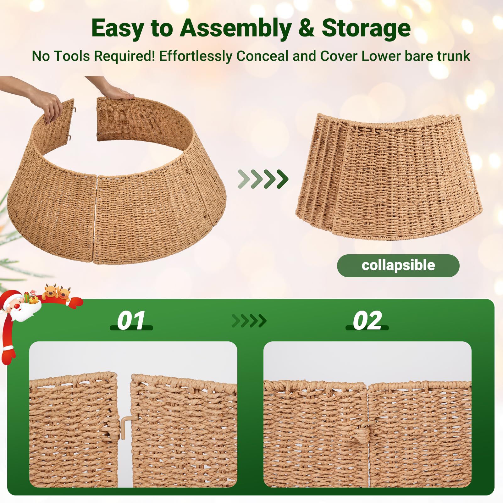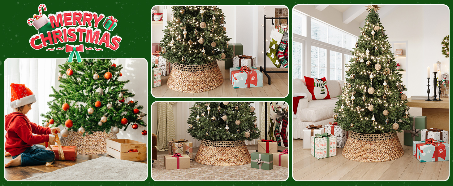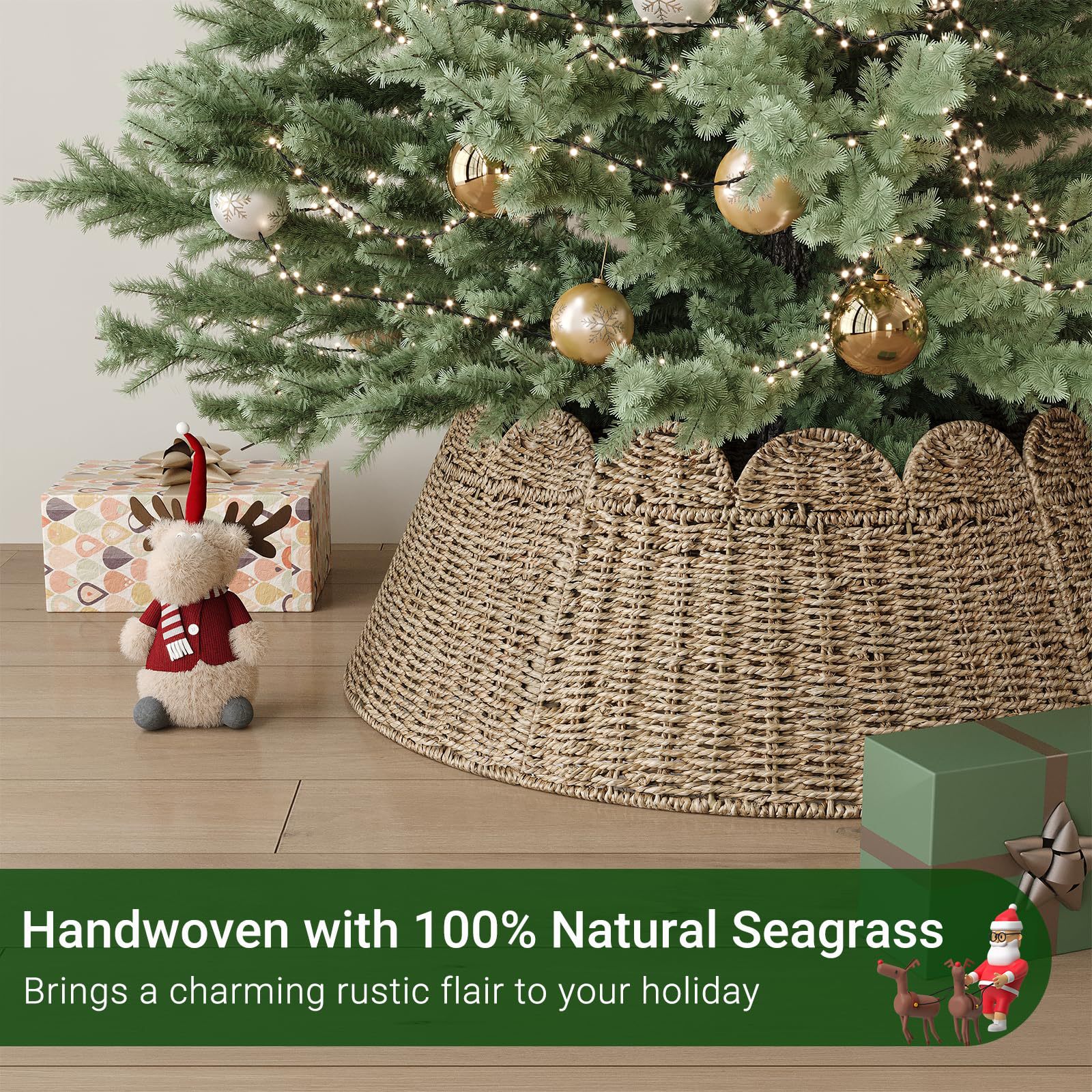 Base de árbol de navidad de hierba de mar desmontable personalizado transfronterizo hecho a mano hierba de jacinto de agua decoración de Navidad alrededor del árbol falda de árbol
