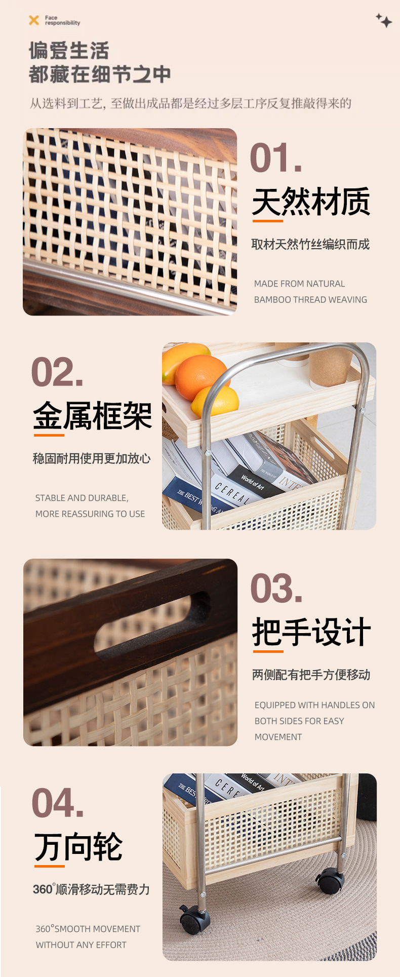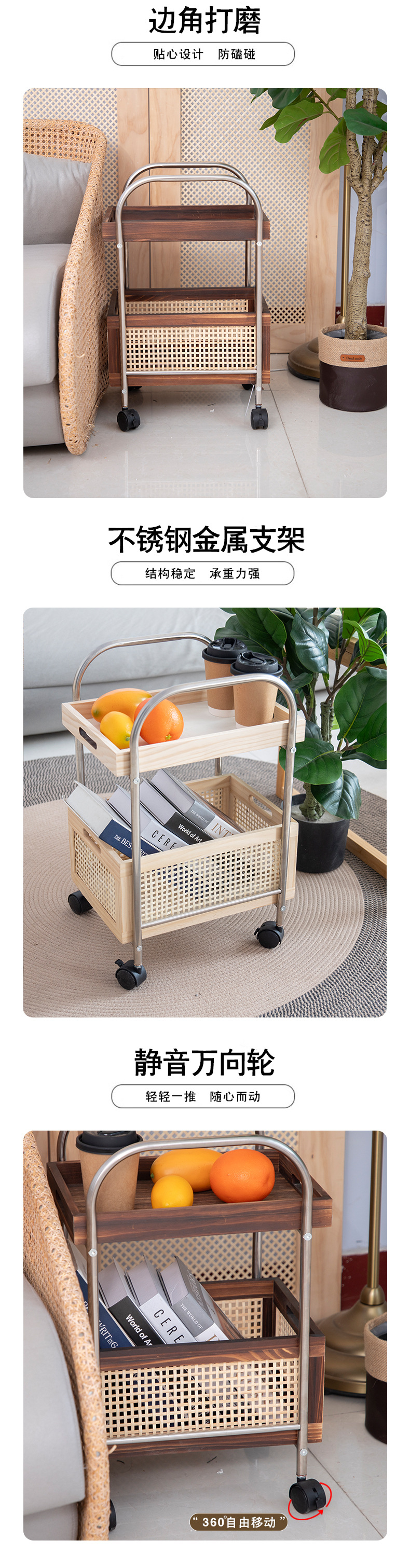 Carro con ruedas de acero inoxidable de estilo antiguo, estante extraíble, sala de estar, baño, sofá, mesa de centro, canasta de almacenamiento