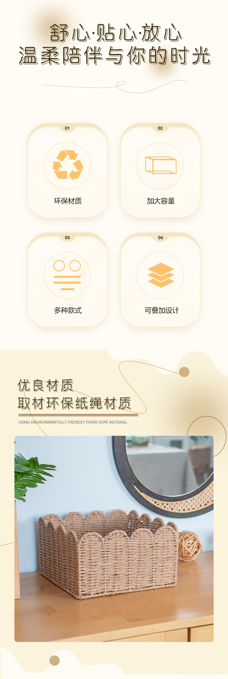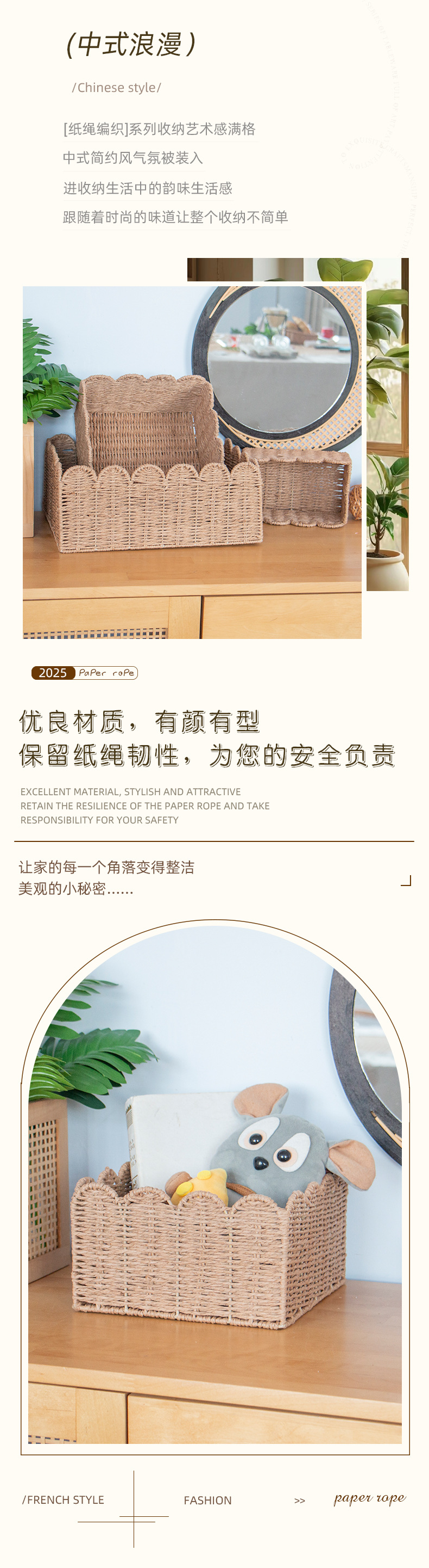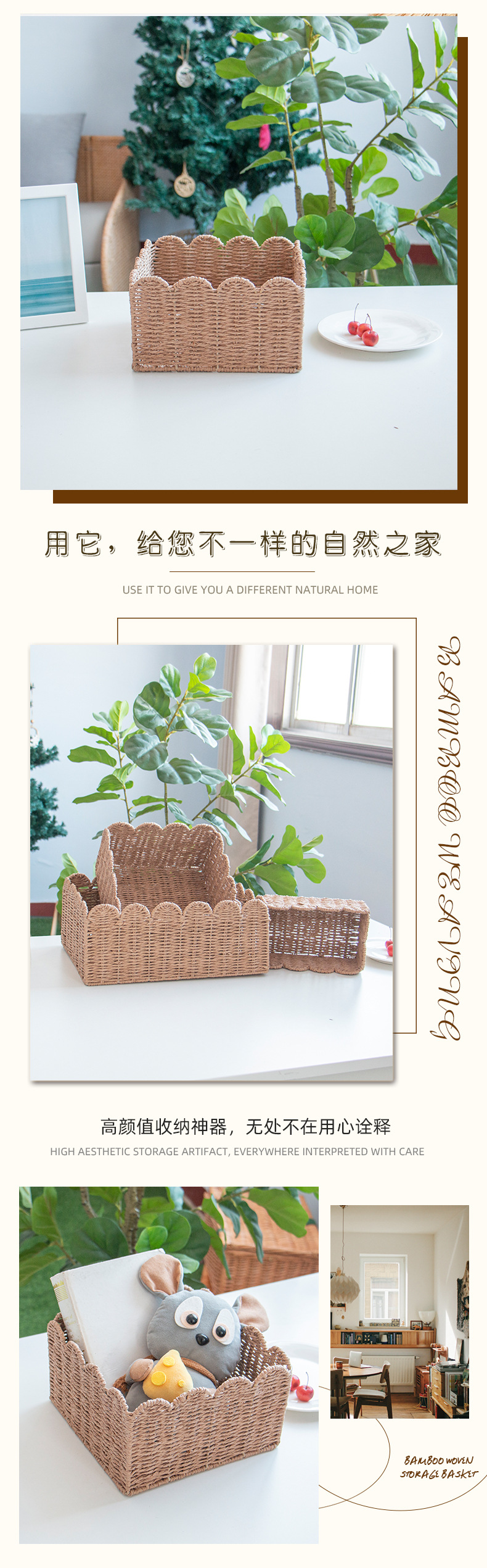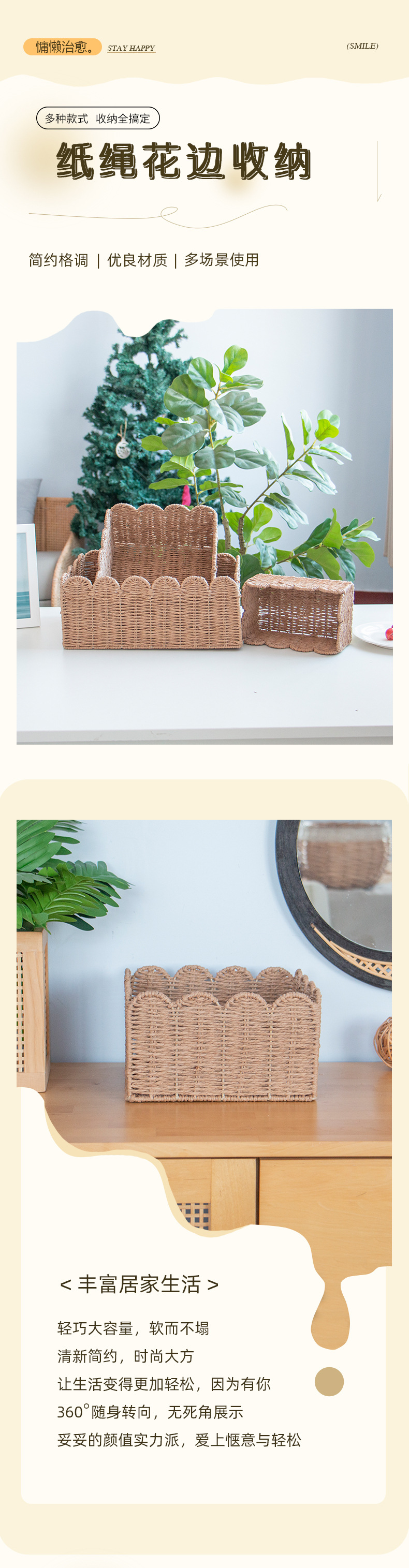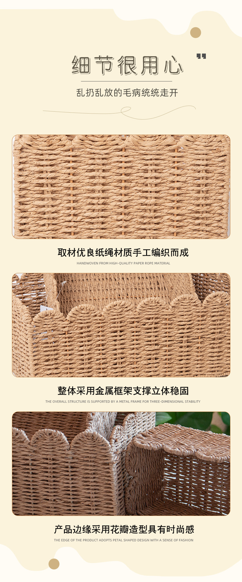 Cesta de almacenamiento de tela de caña de escritorio de acabado de papel cuerdas trenzadas caja de almacenamiento sala de estar gabinete de cocina estudio de muebles caseros cesta de almacenamiento