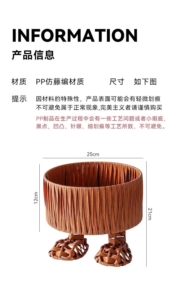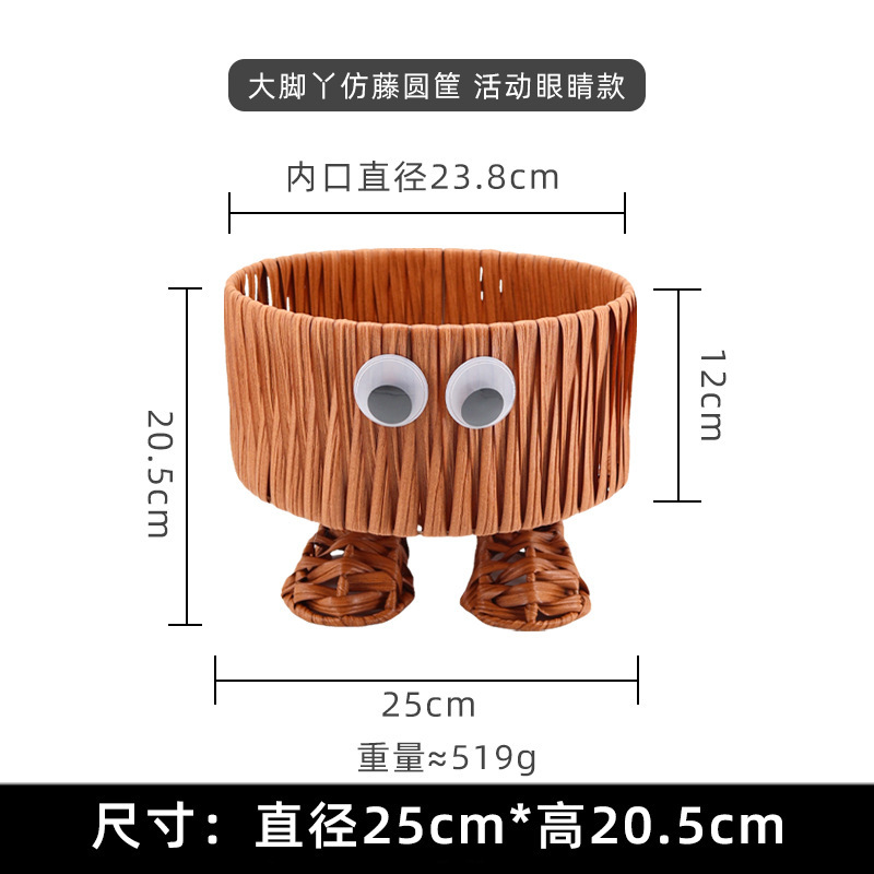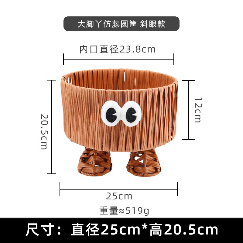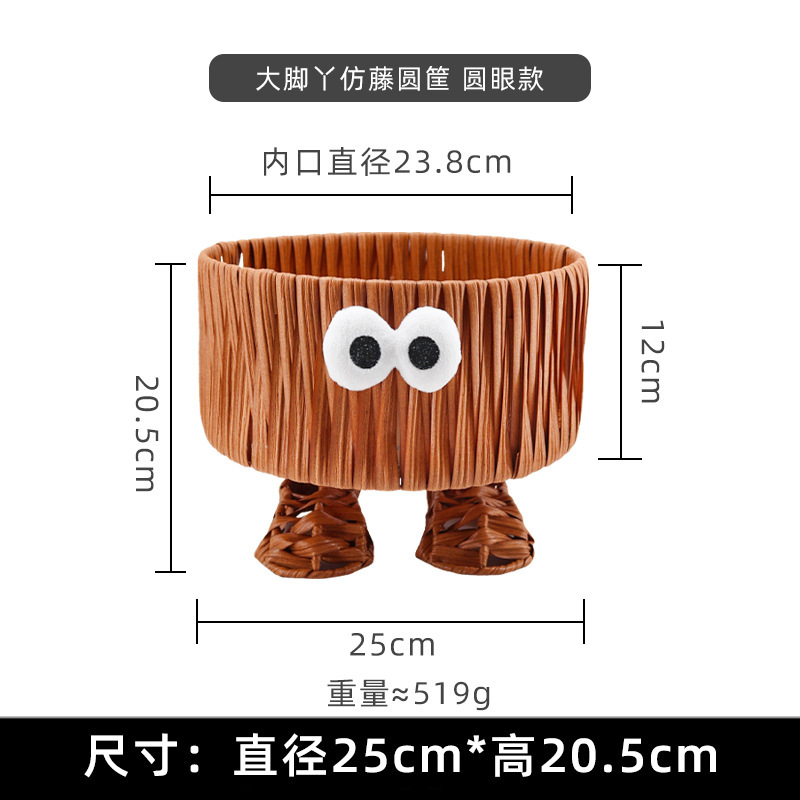 Cesta de almacenamiento de pequeños monstruos tejidos de caña de dibujos animados lindos pies grandes canasta de frutas de escritorio sala de estar bocadillos canasta de almacenamiento