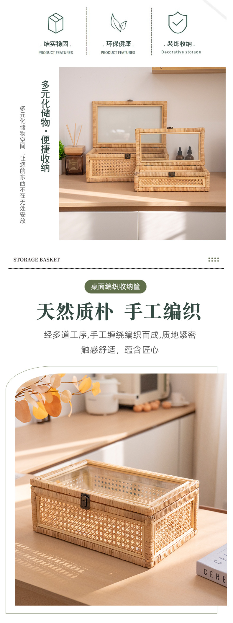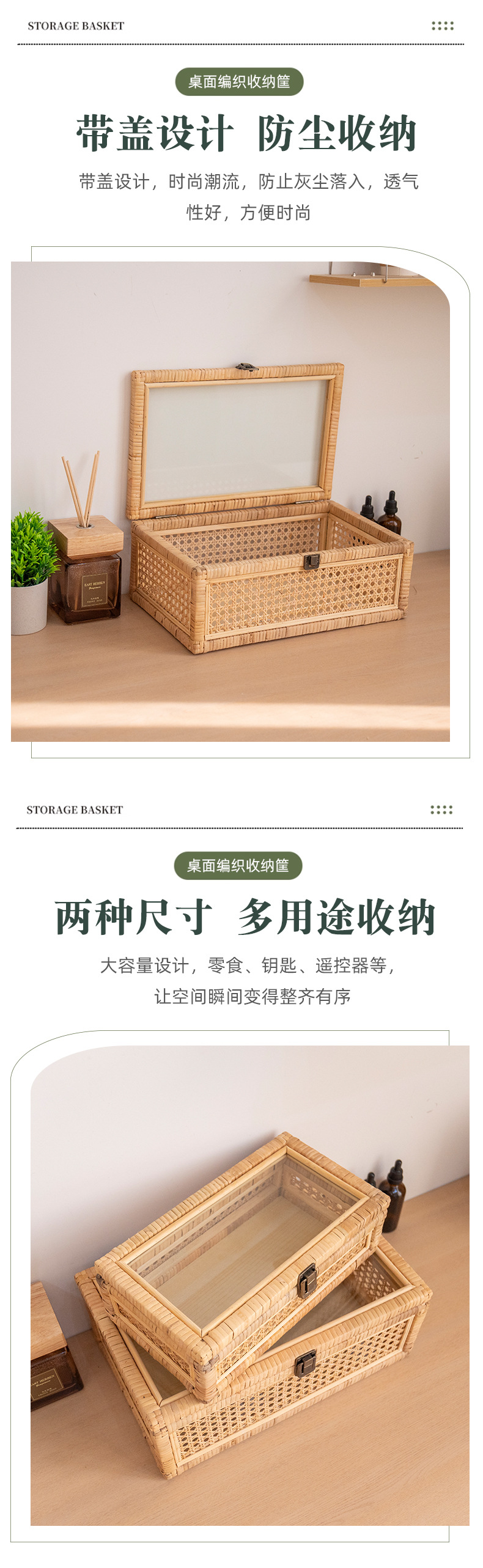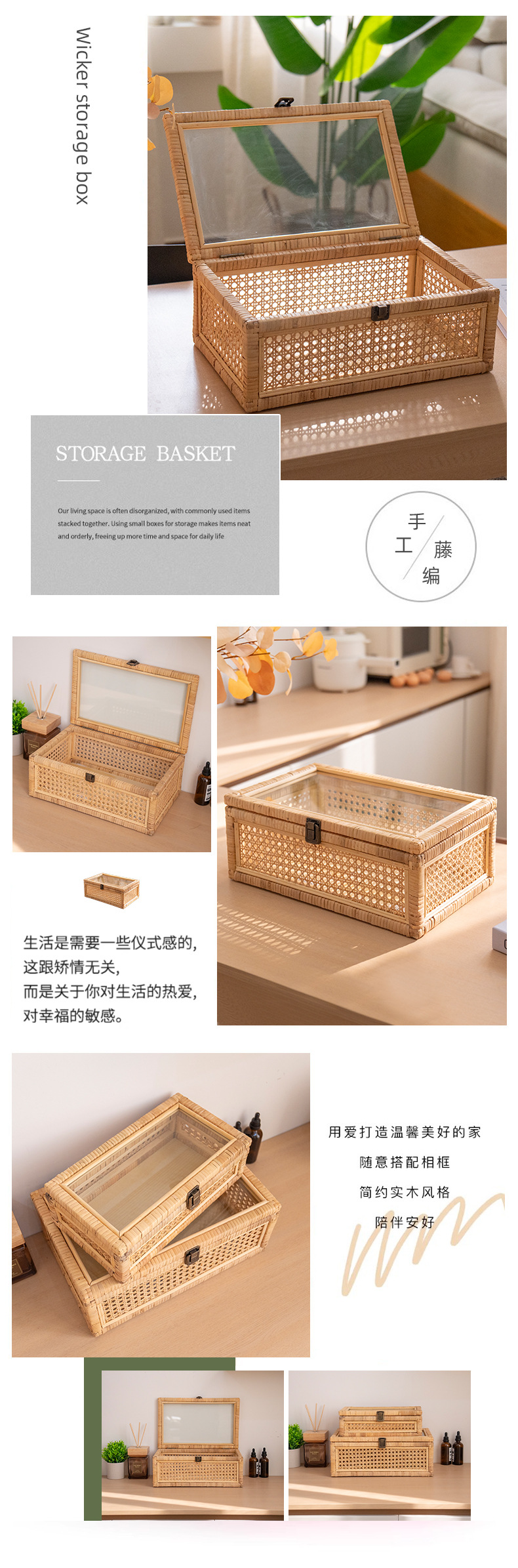 | Color | 35 * 22 * 18cm con tapa pequeña (con cadena en un lado), 42 * 28 * 24cm con tapa media, 48 * 34 * 29cm con tapa grande, un conjunto de tapa (pequeño + medio + grande), caja de almacenamiento de tela de caña pequeña, caja de almacenamiento de tela de caña grande |