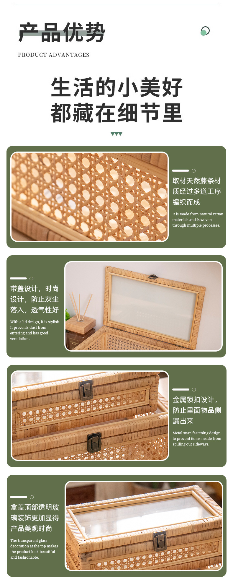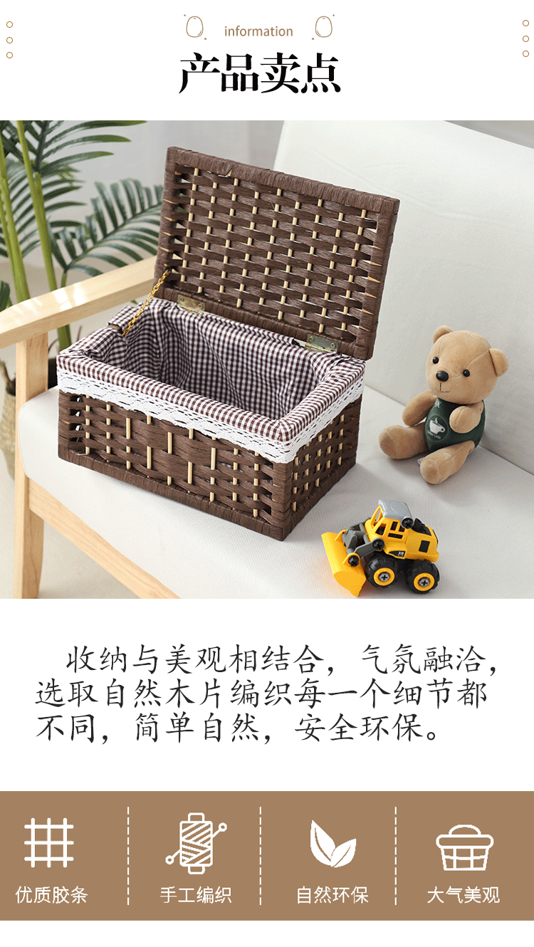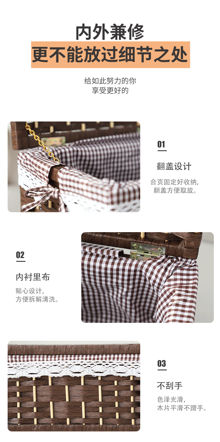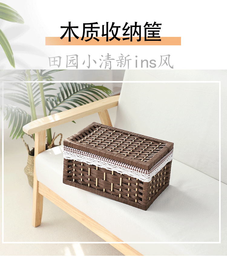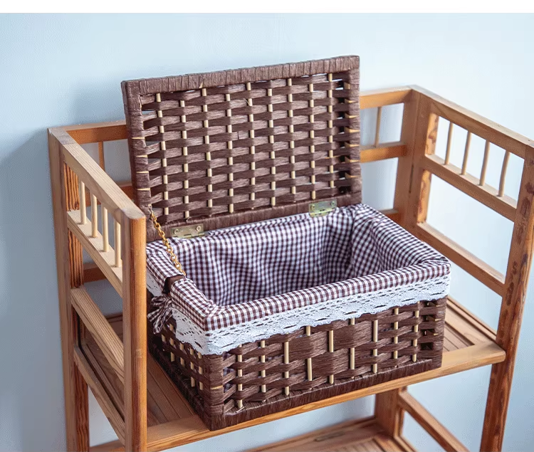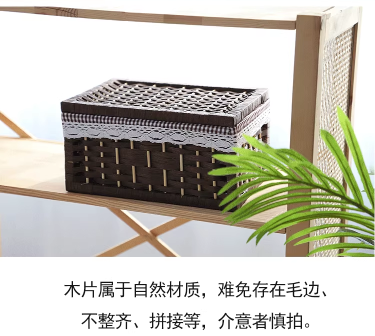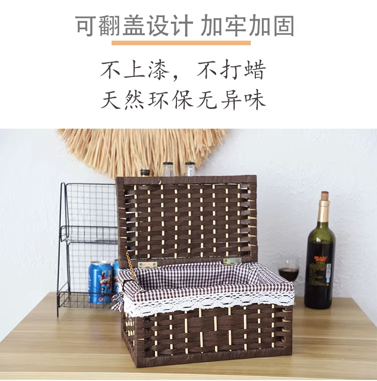 Cesta de almacenamiento de tejido de caña con cubierta de bambú rectangular caja de almacenamiento doméstica tela de mano tela de tela de