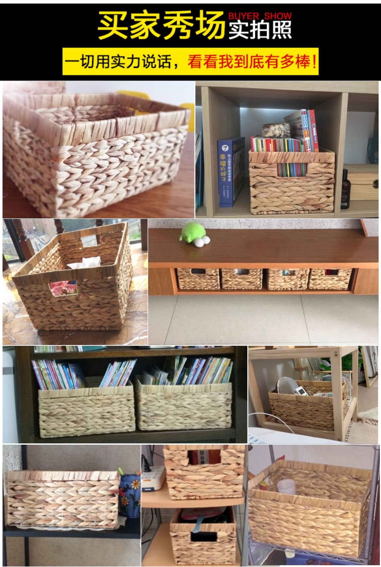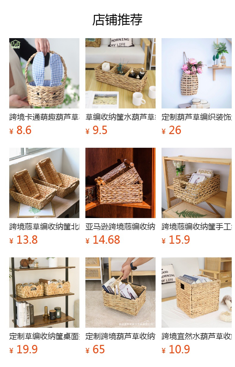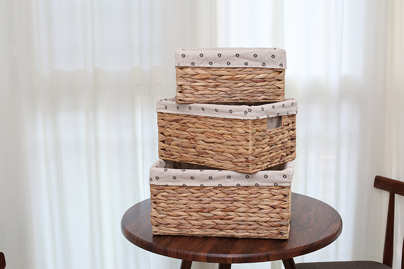Venta caliente transfronteriza cesta de almacenamiento de paja hecha a mano rectangular calabaza de agua caja de almacenamiento de hierba libro de juguete cesta de almacenamiento de artículos diversos
