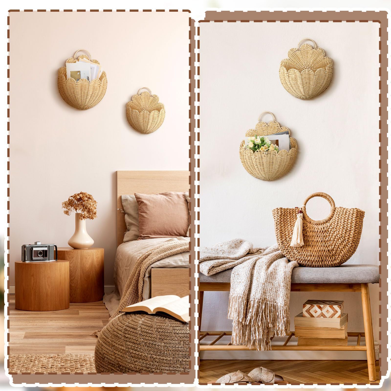 Cesta de almacenamiento de pared de caña personalizada decoración residencial llave cesta de almacenamiento de artículos diversos cestas de pared de decoración en forma de ventilador