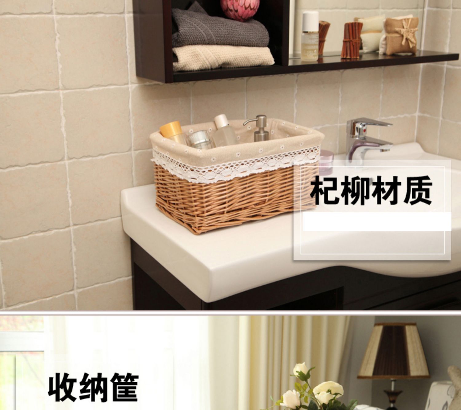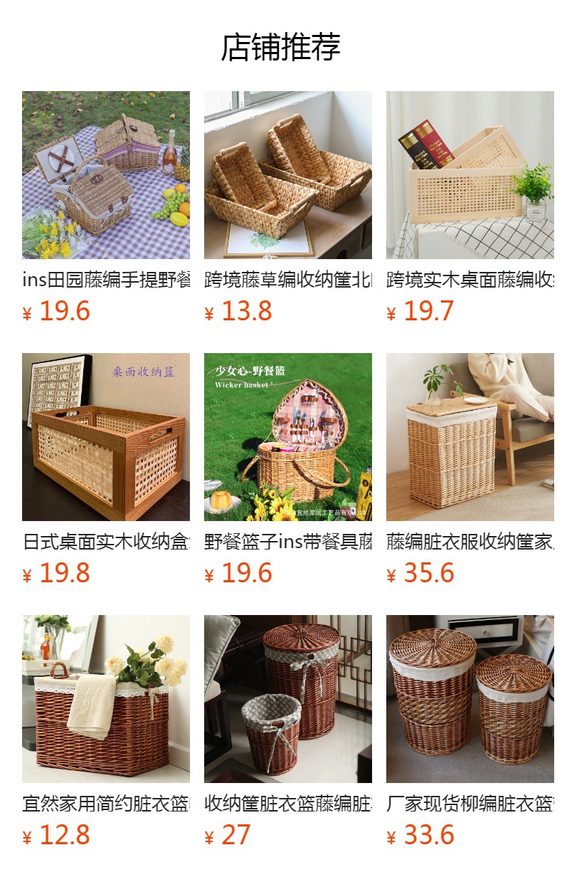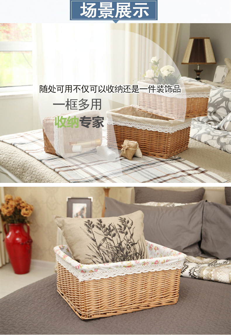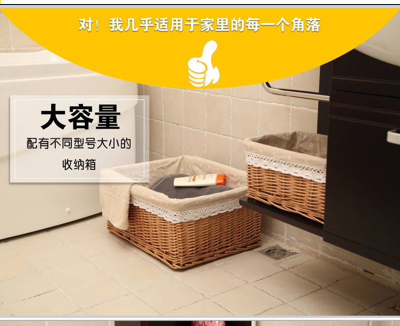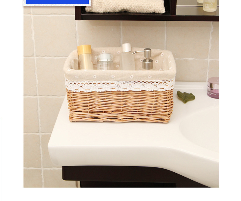 Yiran cesta de almacenamiento de mimbre organización suministros para el hogar supermercado cesta de exhibición cesta de almacenamiento de cajón de ratán tejida a mano