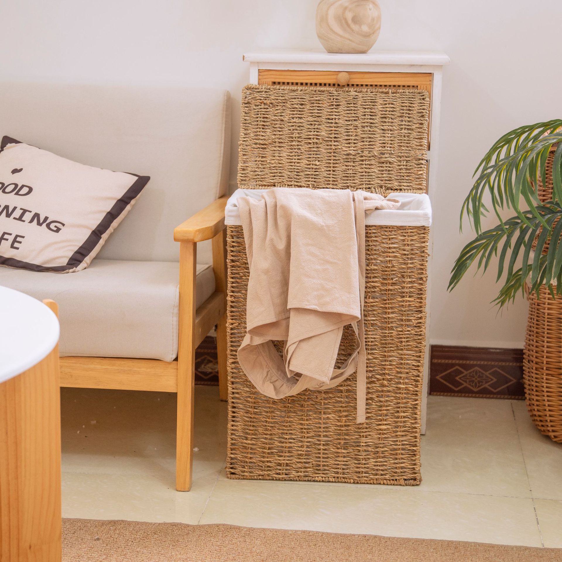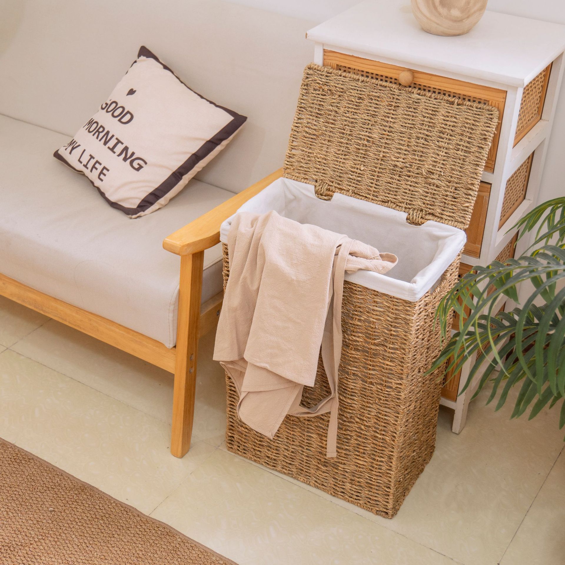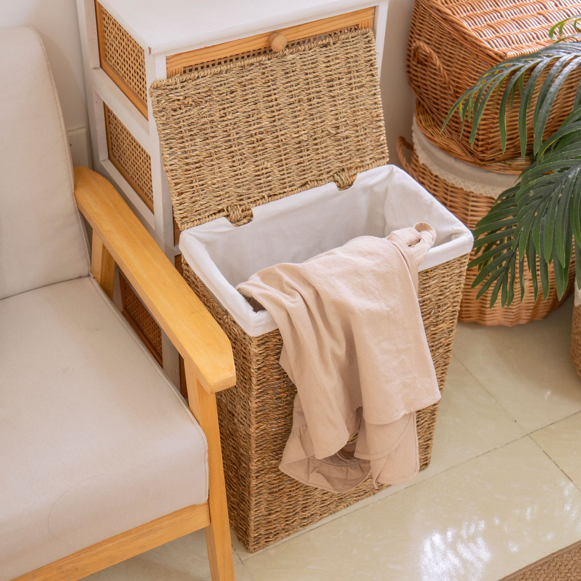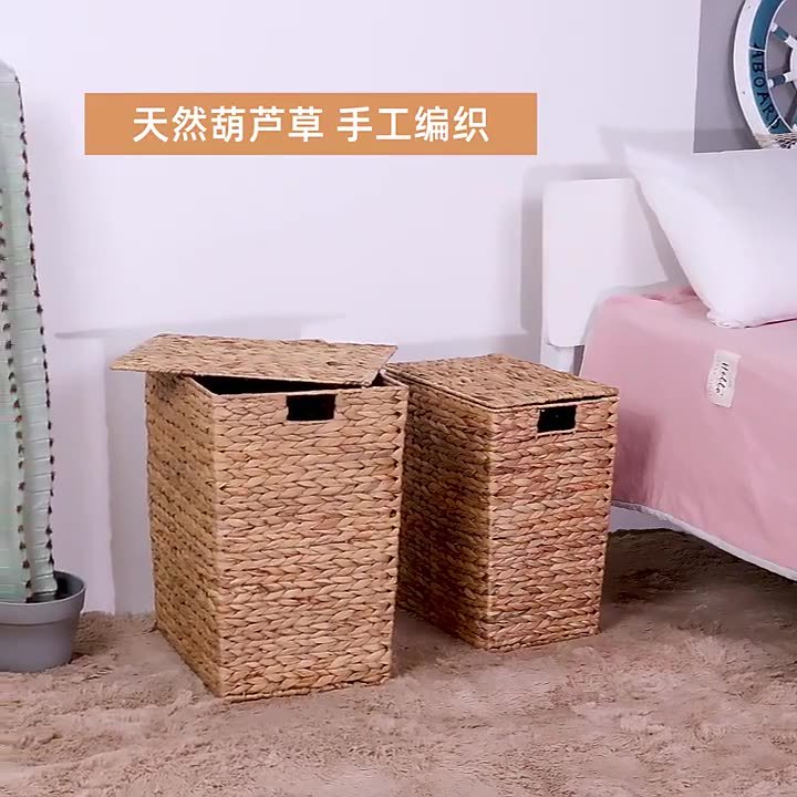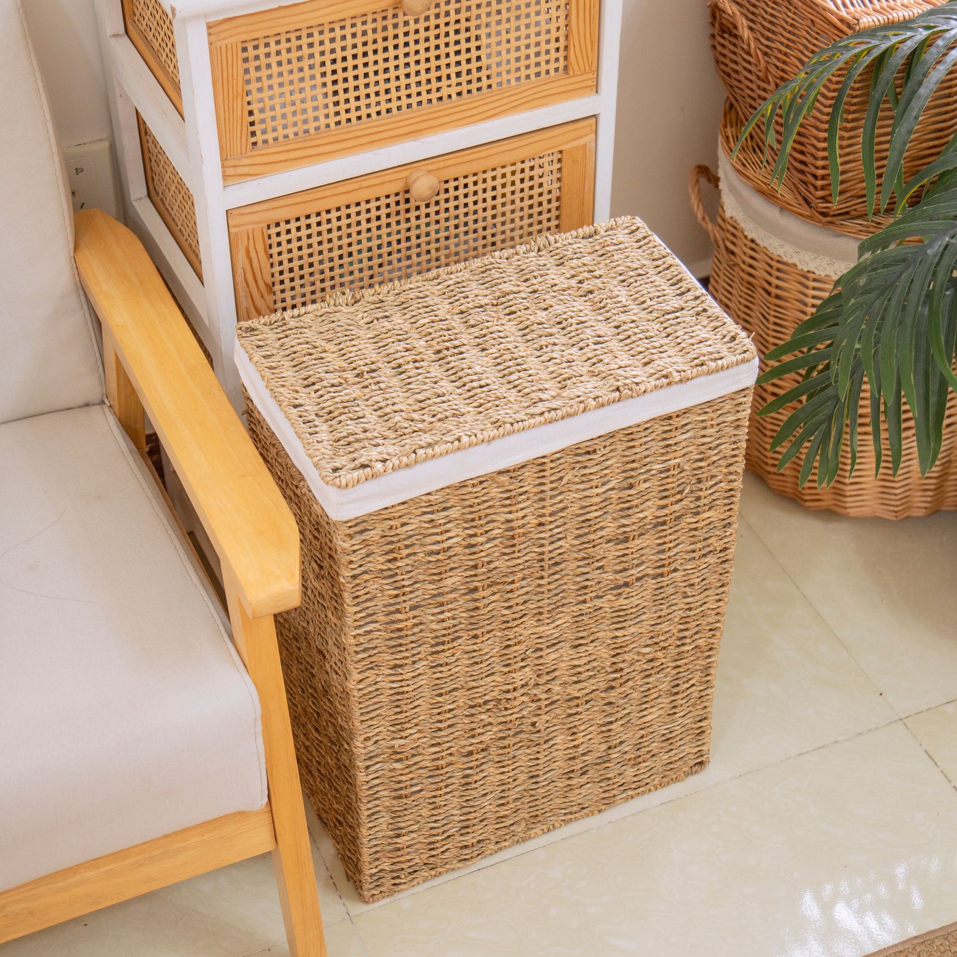Transfronteriza personalizada cesto de lavandería trenzado de algas marinas dormitorio caja de almacenamiento de ropa sucia con cubierta de almacenamiento de juguetes cesto de almacenamiento