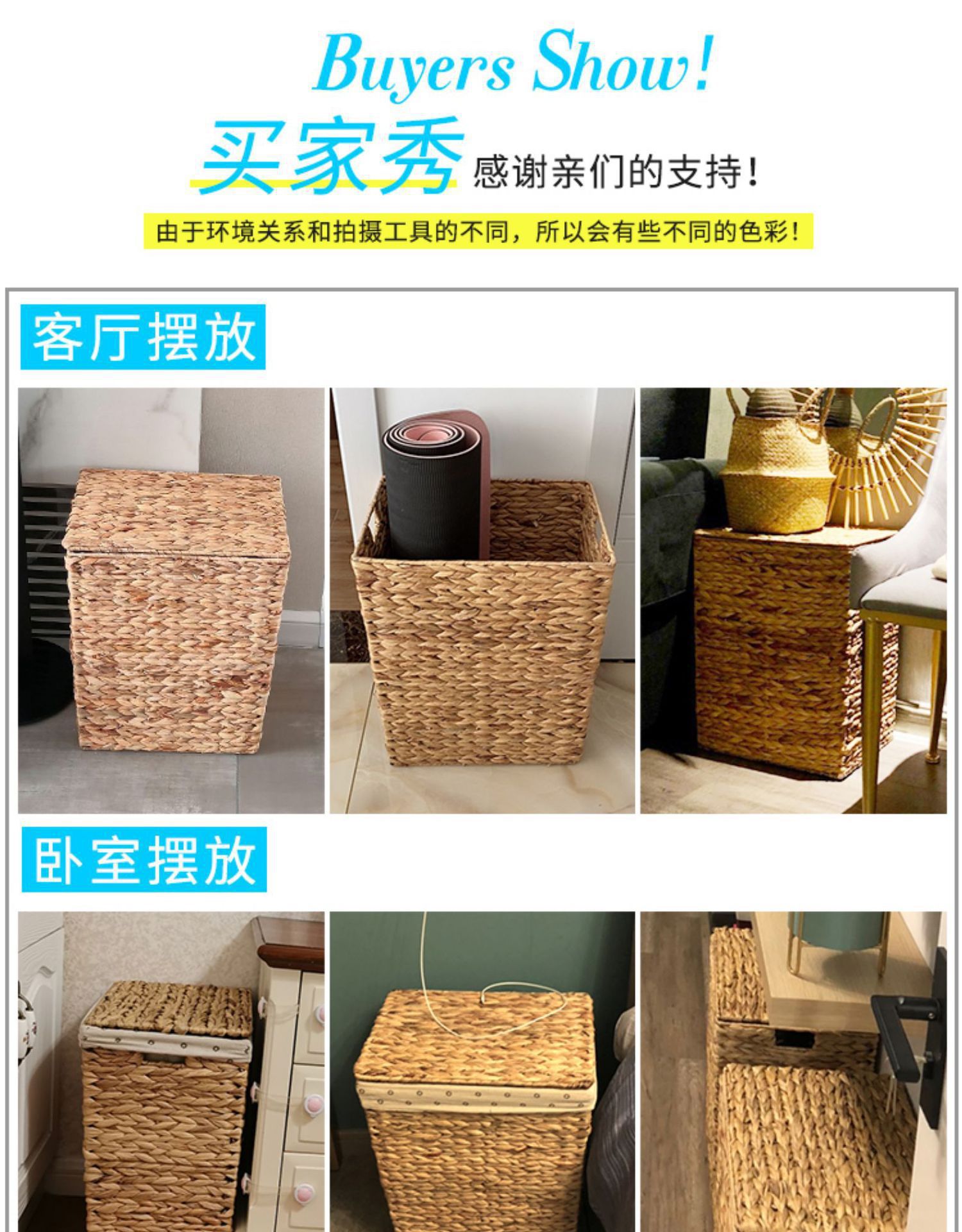 Cesta de ropa sucia tejida a medida transfronteriza cuadrada con cubierta de gran capacidad de cestas de almacenamiento de ropa de dormitorio