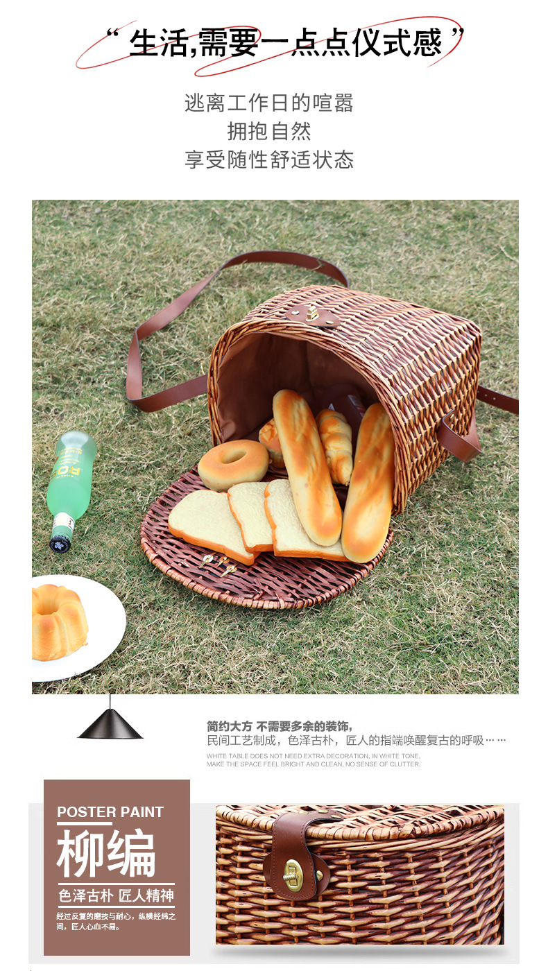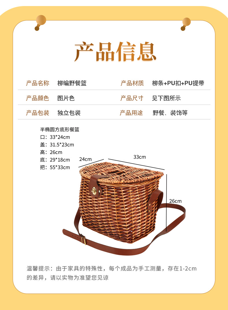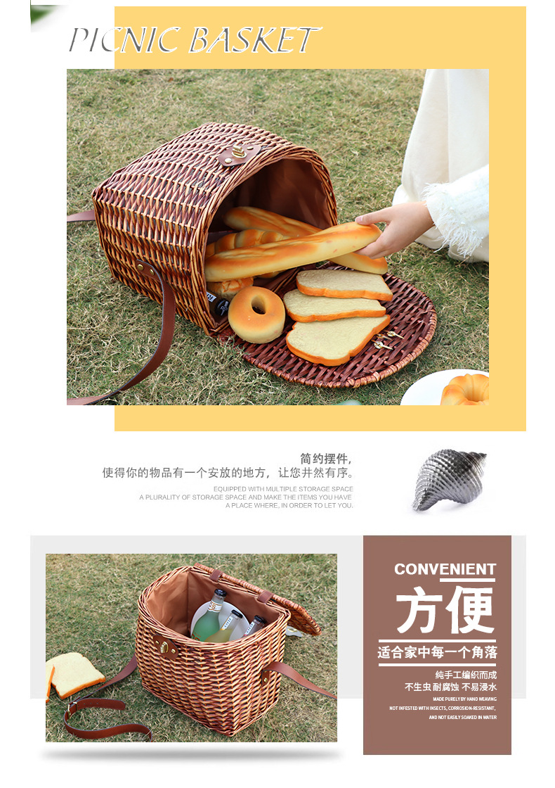Cesta de picnic de ratán personalizada con tapa Bolso diagonal de un solo hombro de recuerdo tejido a mano Cesta de almacenamiento de frutas para salidas al aire libre