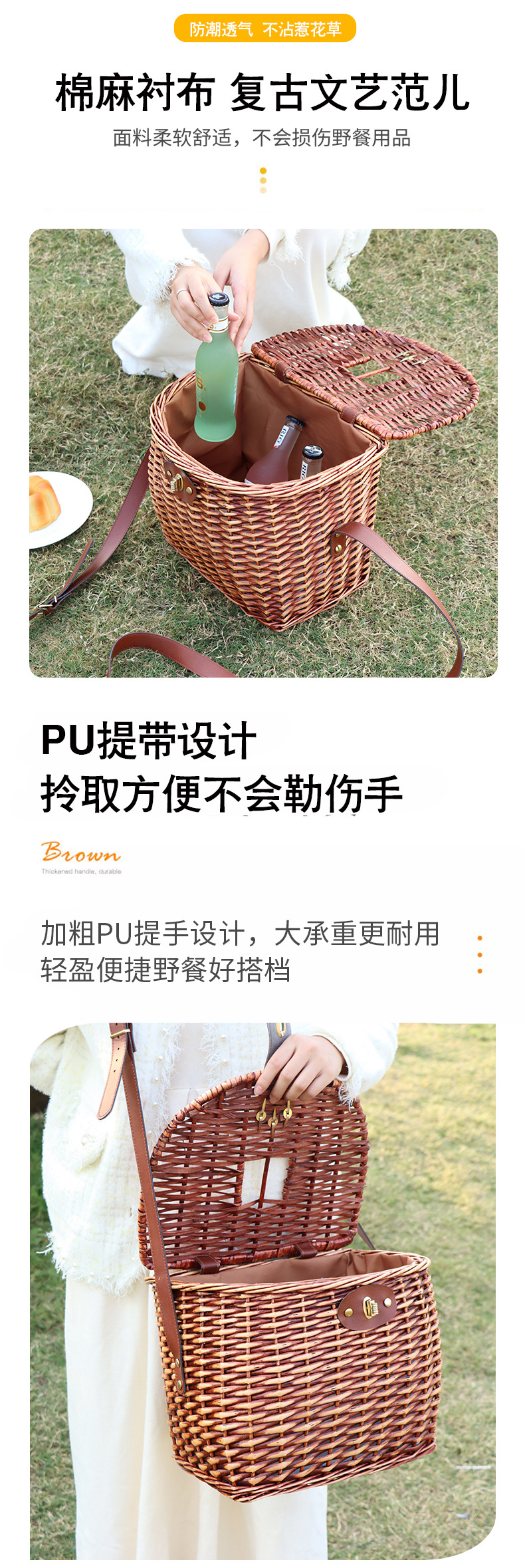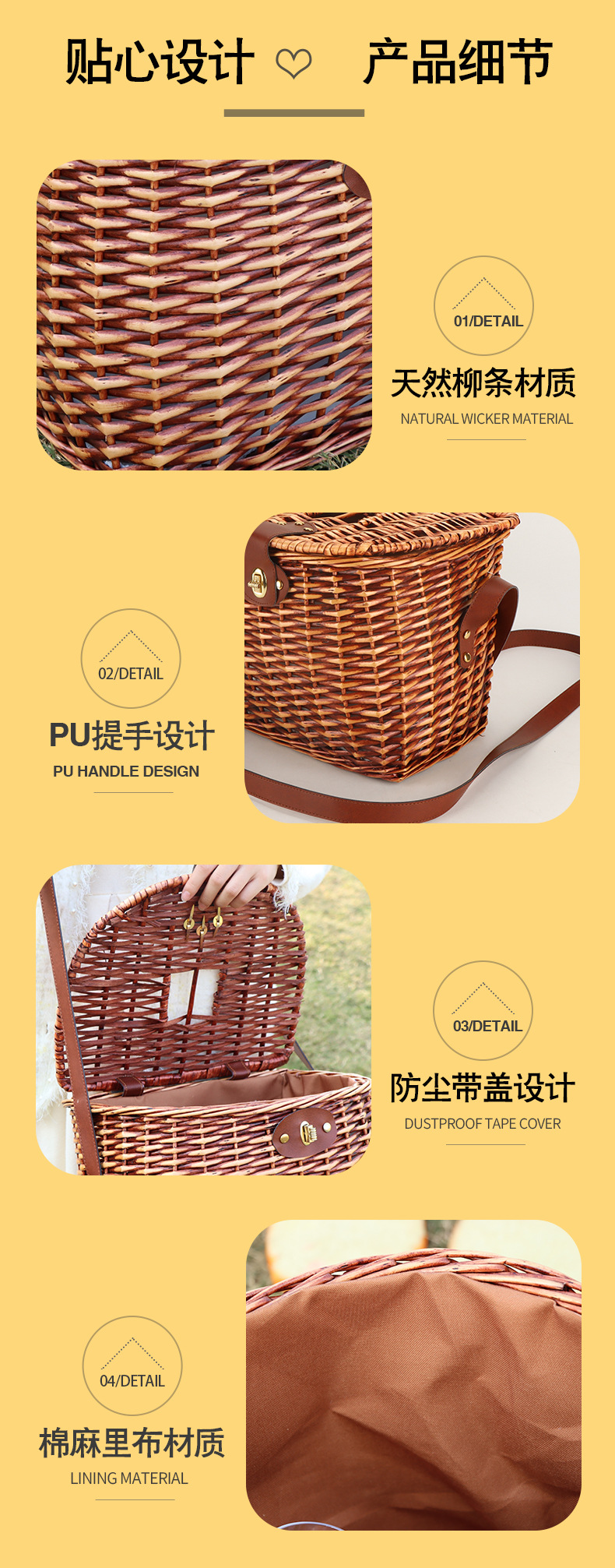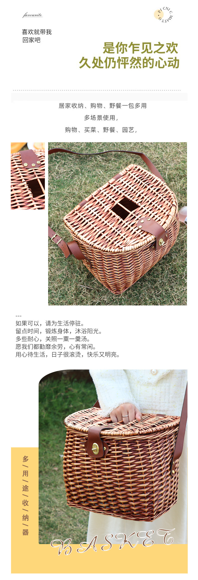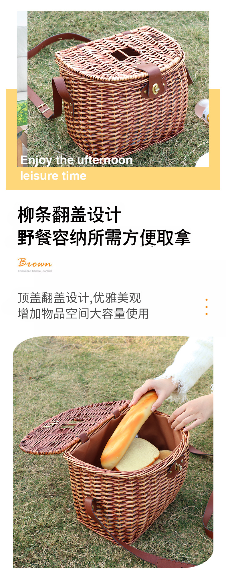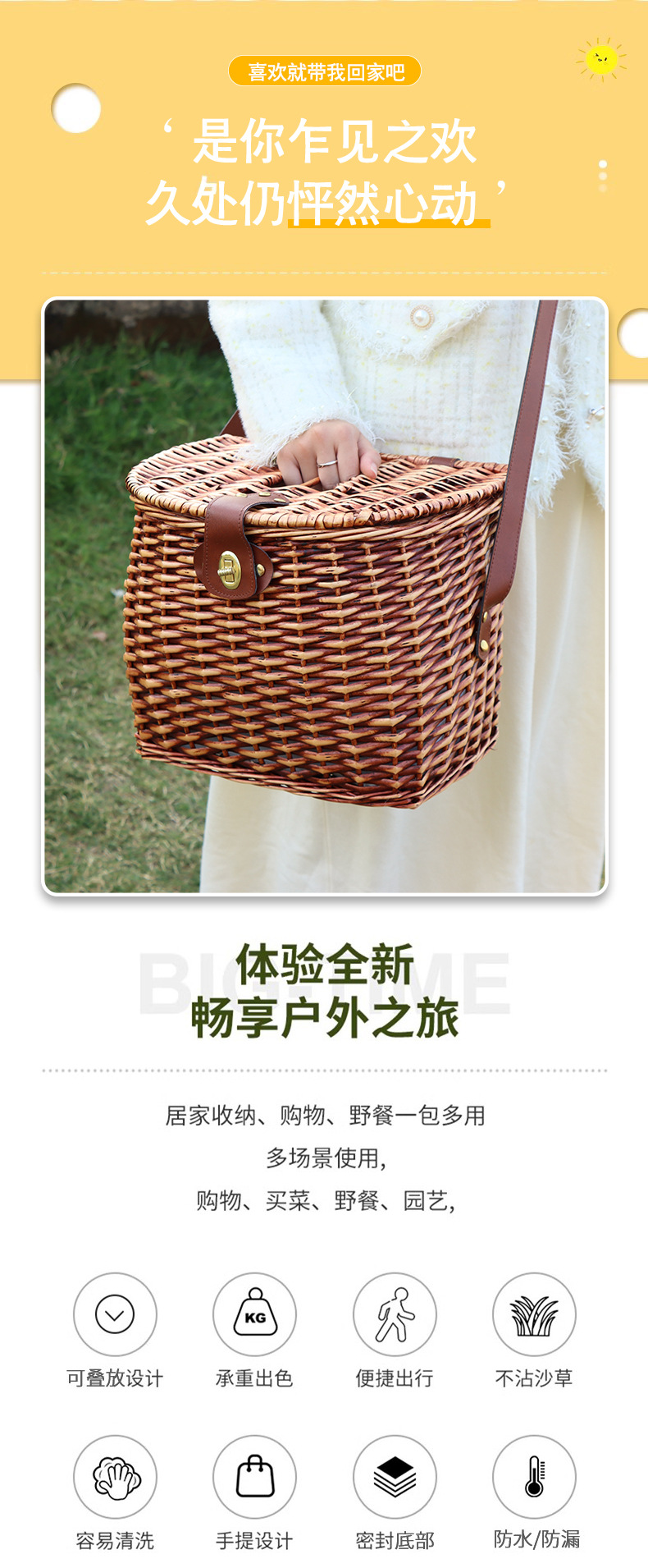 | Colores | Cesta de comedor con correa,Alfombrilla de picnic amarilla y blanca |