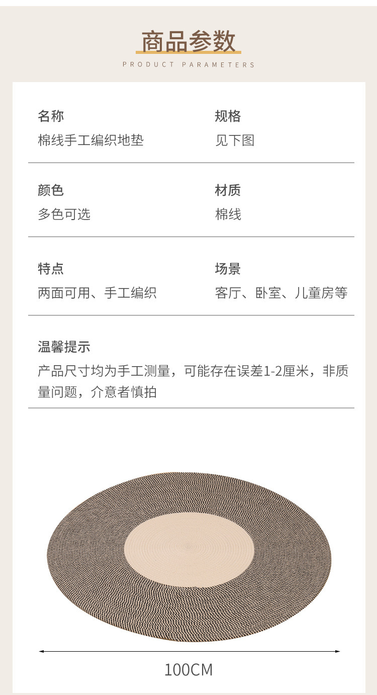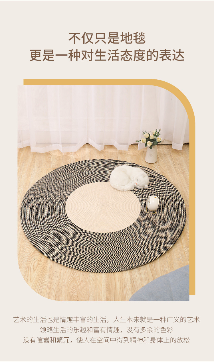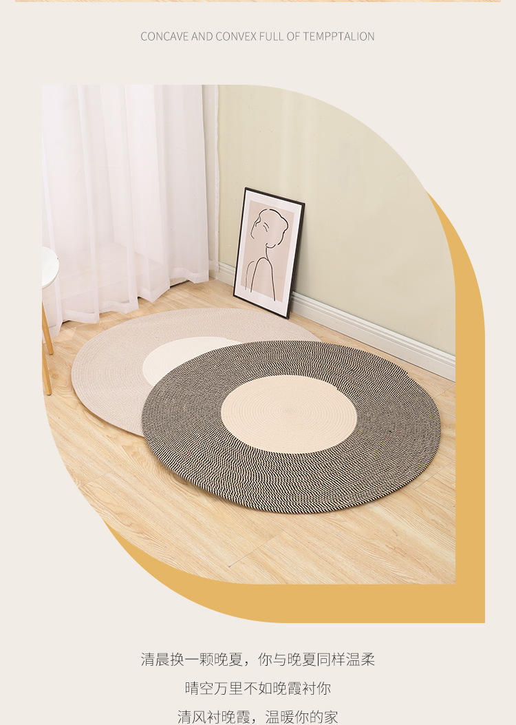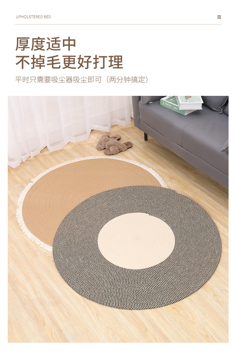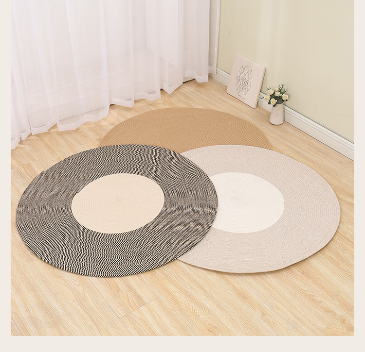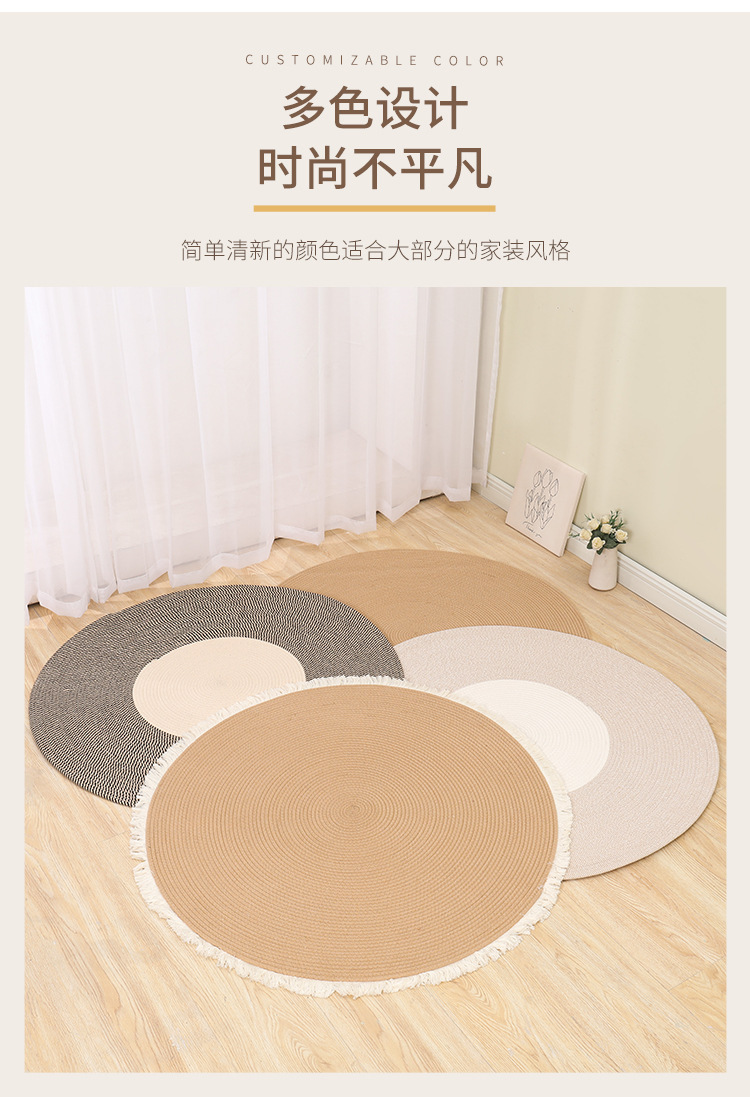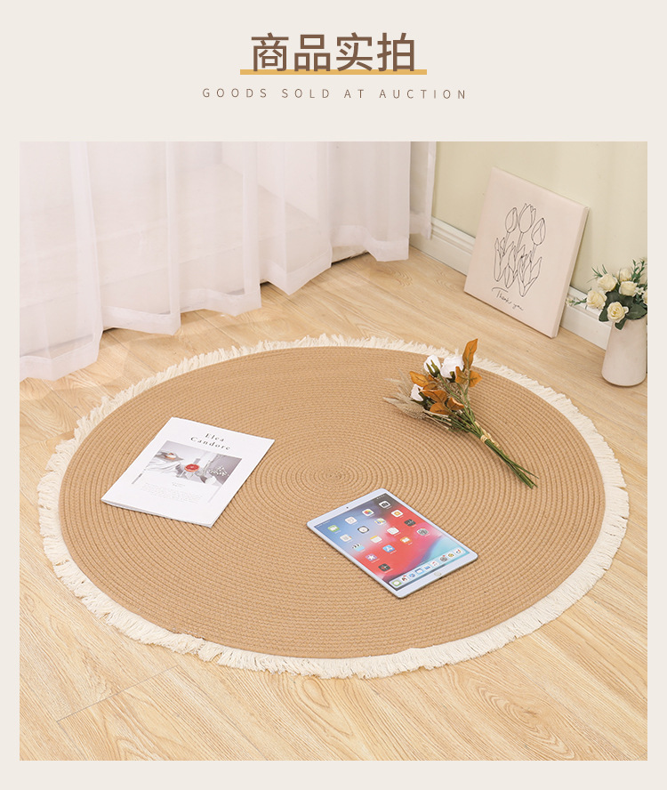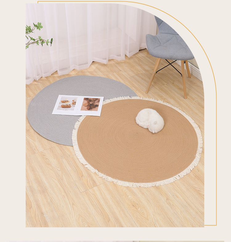 Alfombra de cuerda de algodón nórdico personalizada transfronteriza borla alfombra redonda de yute tejida alfombra de balcón del dormitorio del hogar