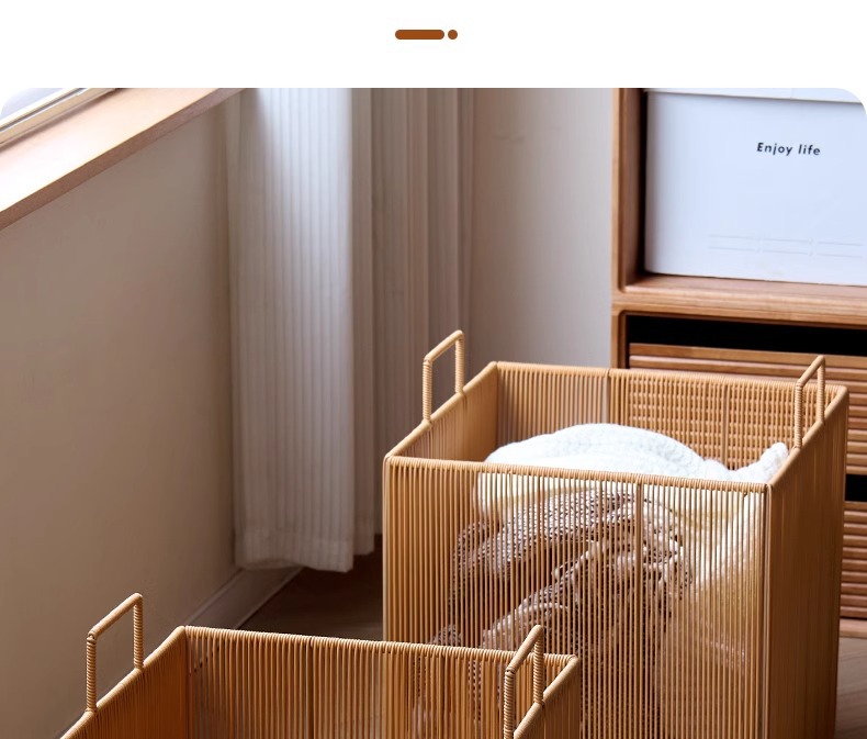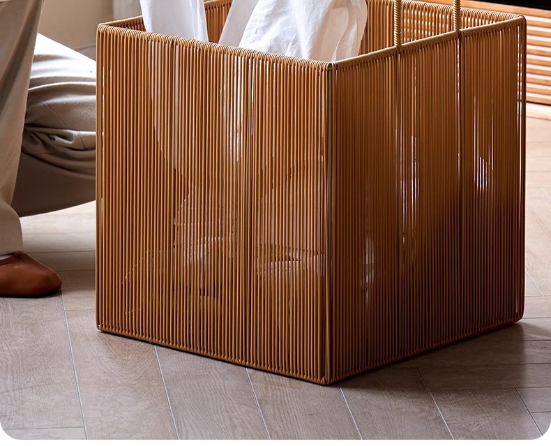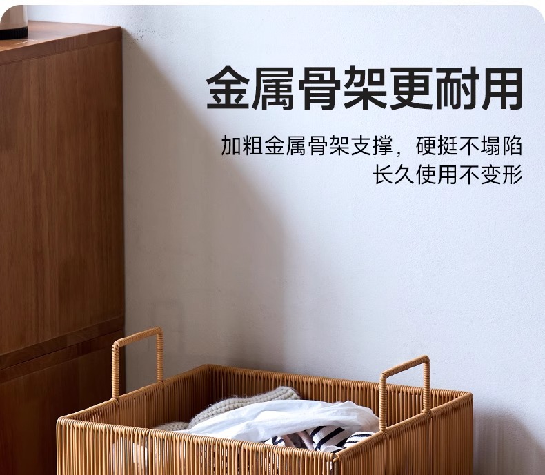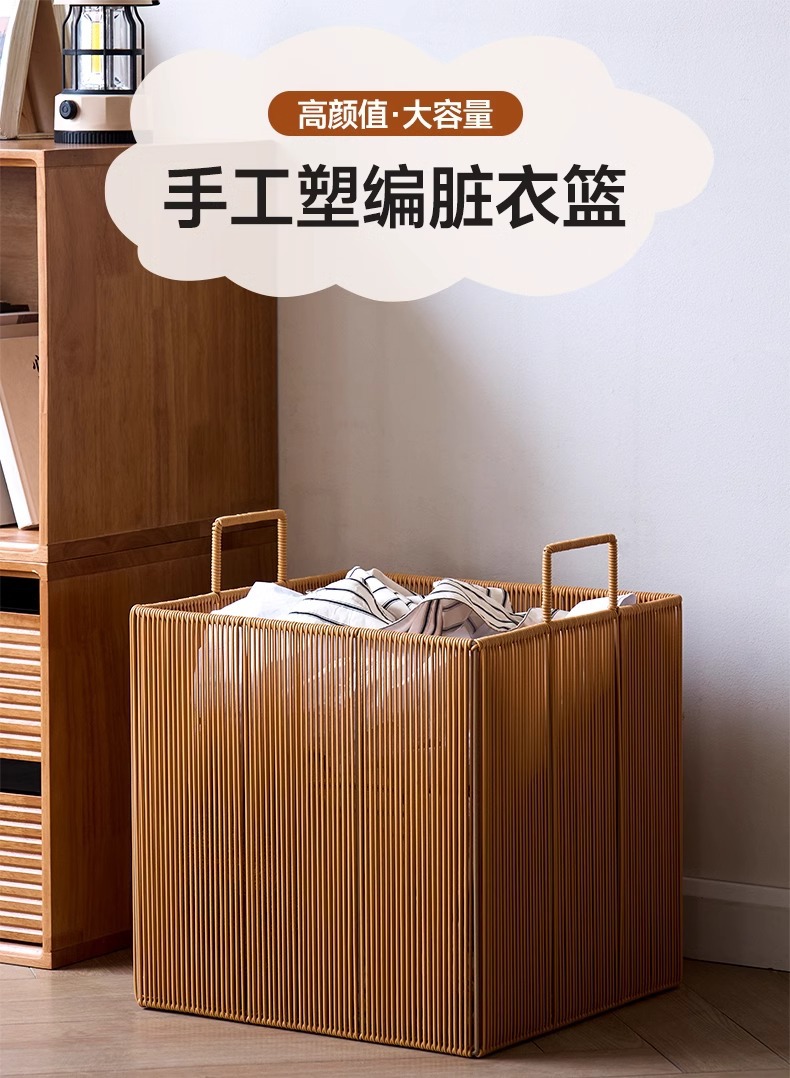 Cesta de ropa sucia tejida de ratán de imitación personalizada Cesta de almacenamiento de ropa sucia para el baño Cesta de ropa sucia impermeable para el hogar Cesta de lavandería para el baño