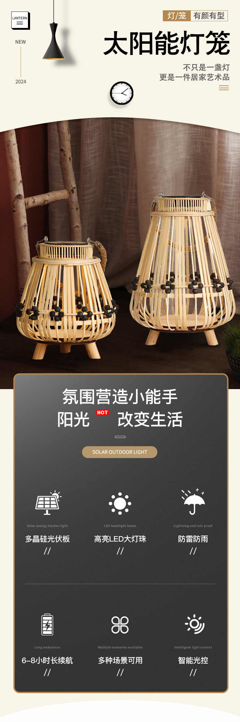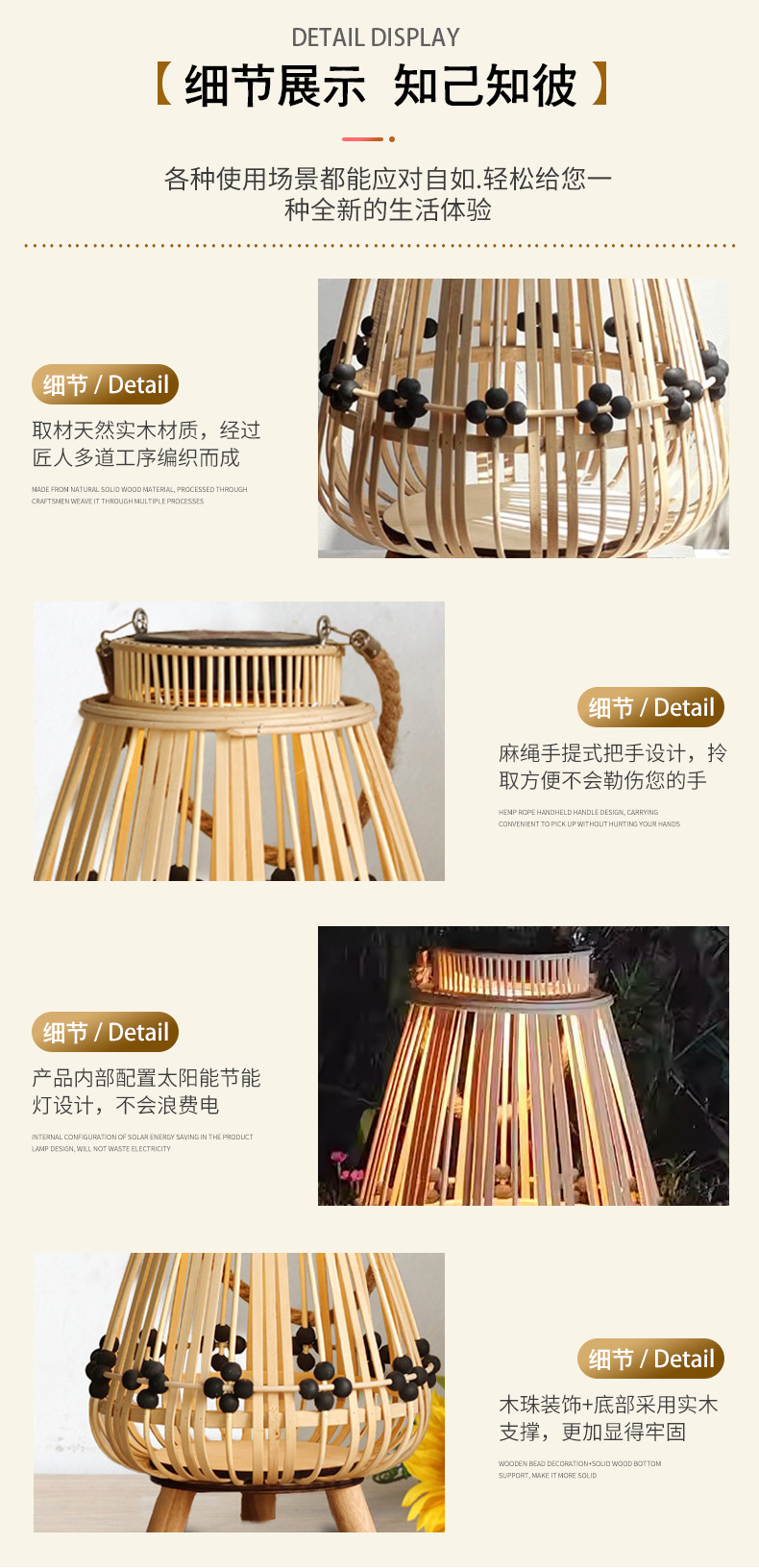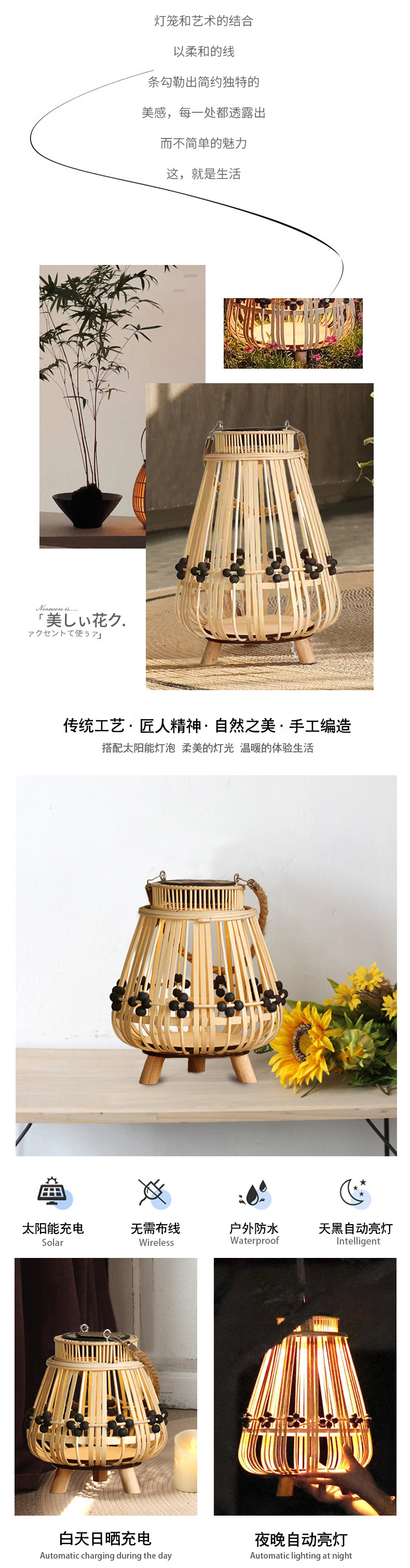 Lámparas de viento de caña retrógradas personalizadas candelabro LED linterna solar hotel patio paisajismo decoración de la atmósfera de la luz