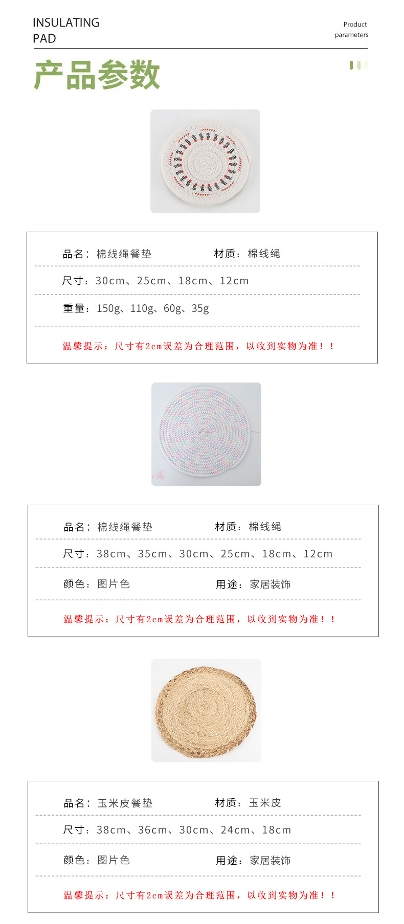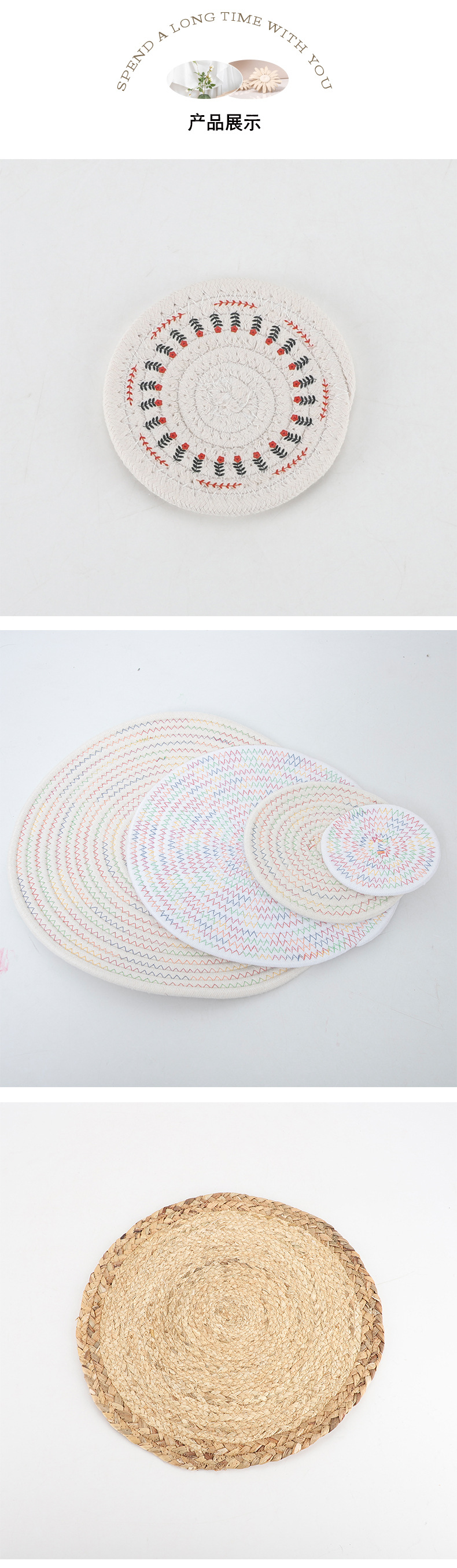 Cojín de paja transfronteriza tela de algodón impresa cojín de taza tejido a mano cojín casero de corteza de maíz cojín de mesa aislante térmico a prueba de quemaduras