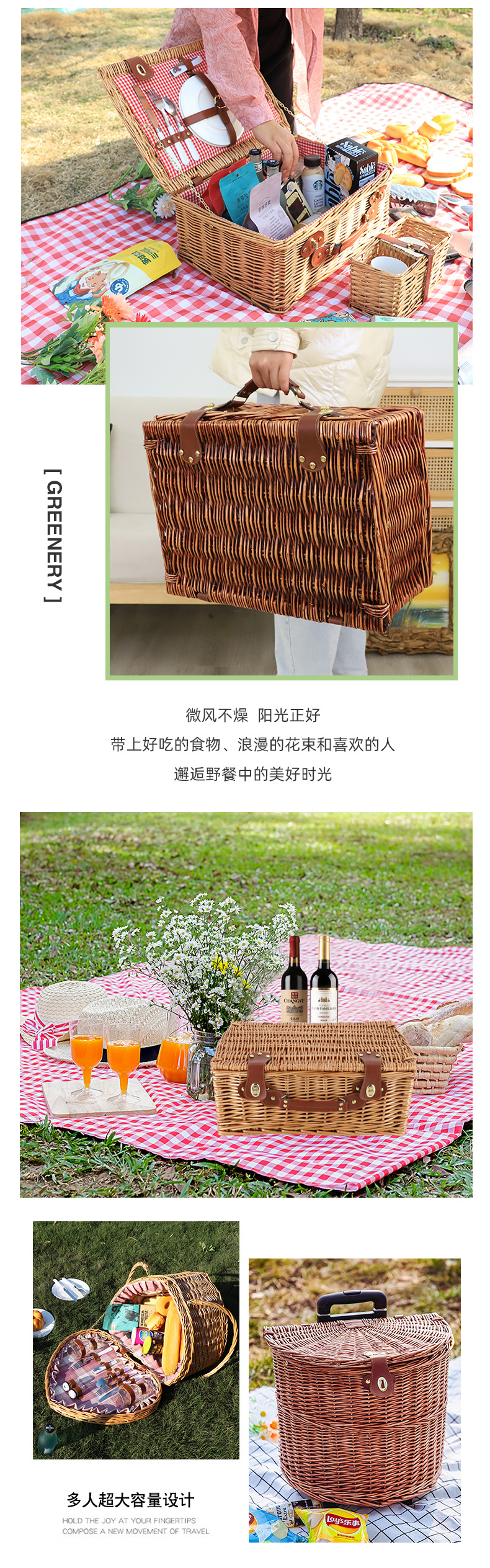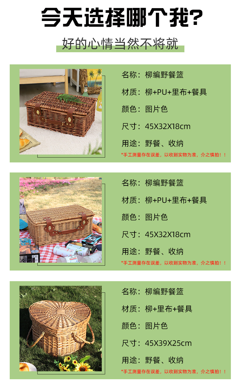 | Color | Cestas de comidas en forma de árbol, sauce al vapor, marrón pulido, cestas de comidas de amor, mangas de cuero sauce al vapor + cubiertos, mangas de cuero cestas de comidas marrón molino + cubiertos, mangas de cuero cestas de comidas sauce al vapor con cubiertos cojín, cubiertos, cojín de picnic |