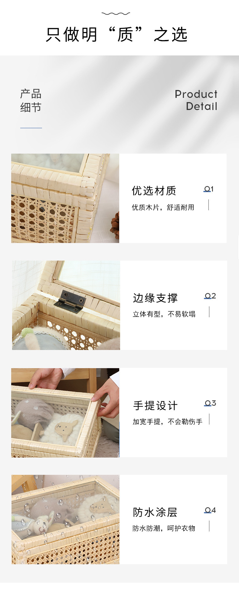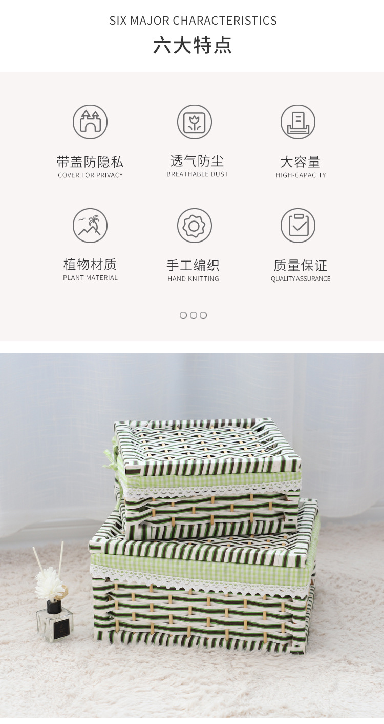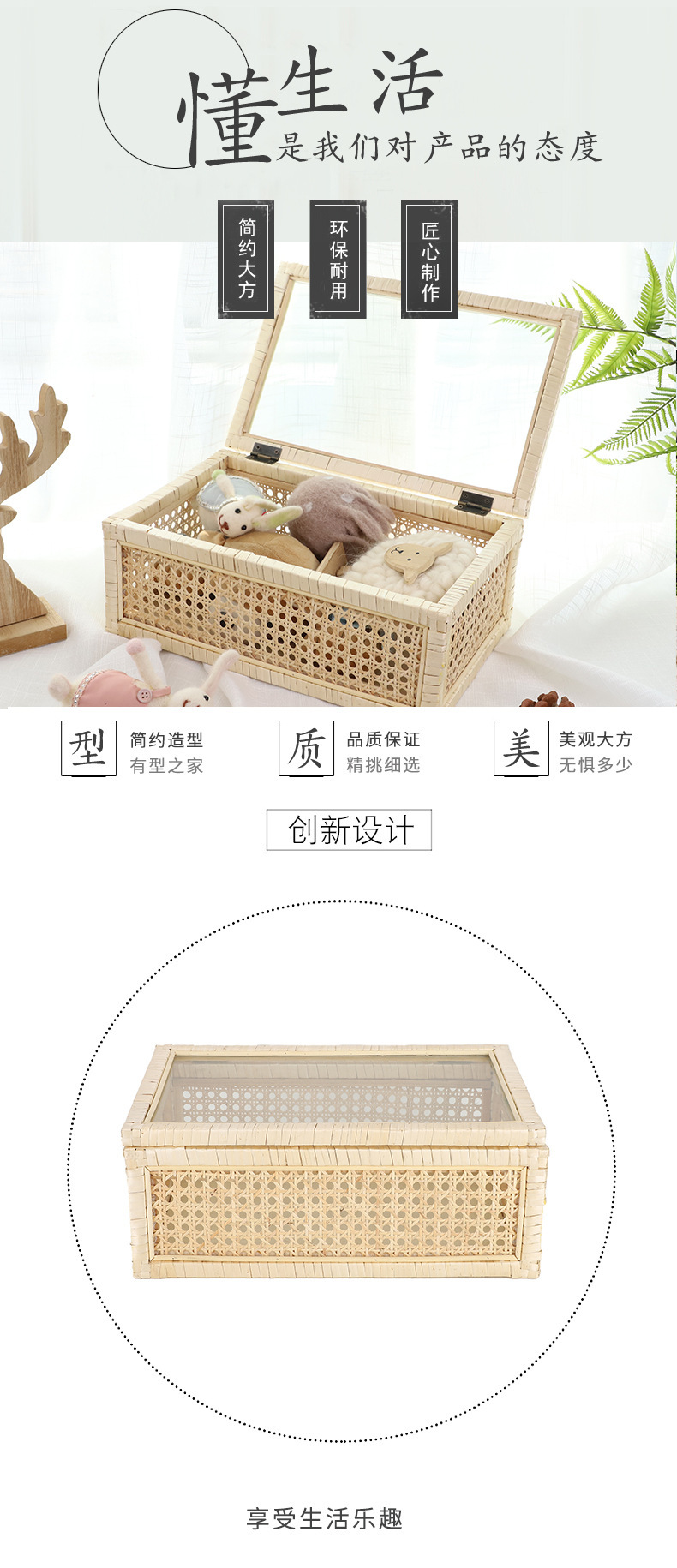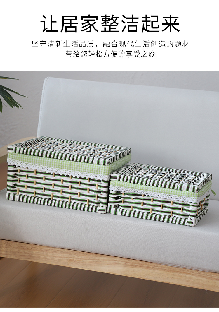 Cesta de almacenamiento de caña personalizada transfronteriza tejida a mano cubierta caja de almacenamiento de juguetes libros de escritorio cesta de almacenamiento