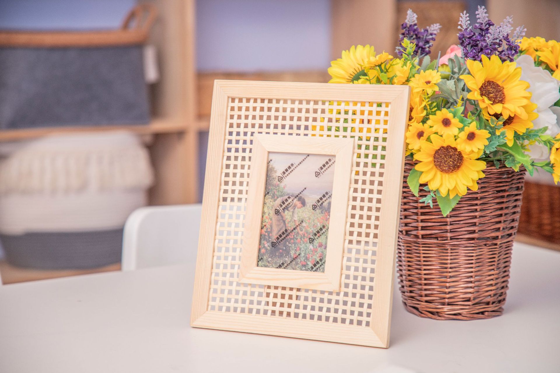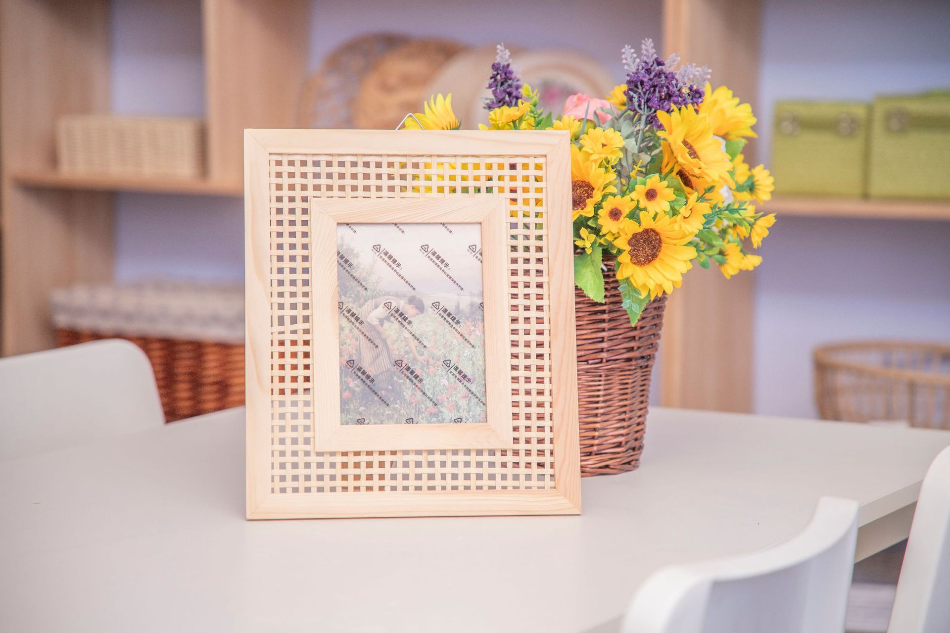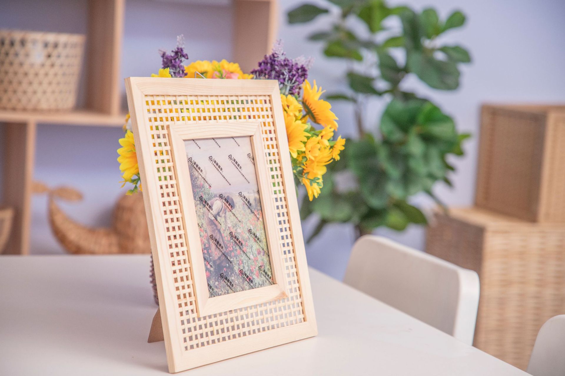 Marco de fotos de madera de pino y bambú