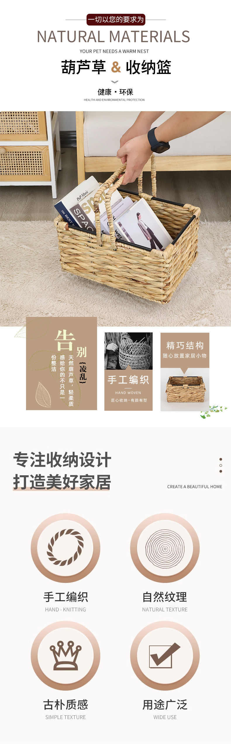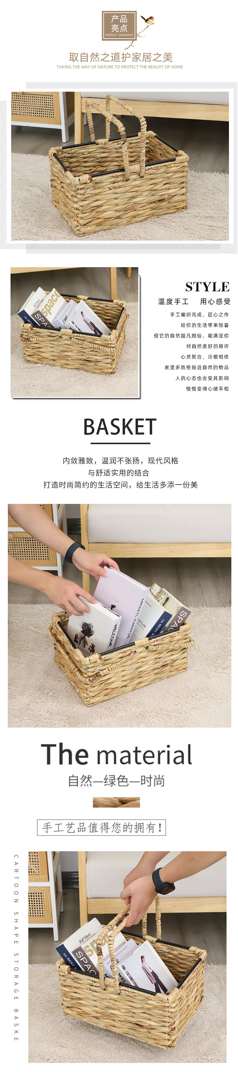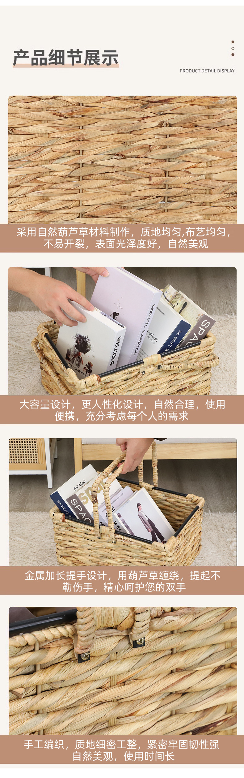 Cesta de almacenamiento de hierba de calabaza transfronteriza personalizada tejida a mano canasta de almacenamiento de hierba de libros caseros juguetes misceláneos canasta de almacenamiento de hierba