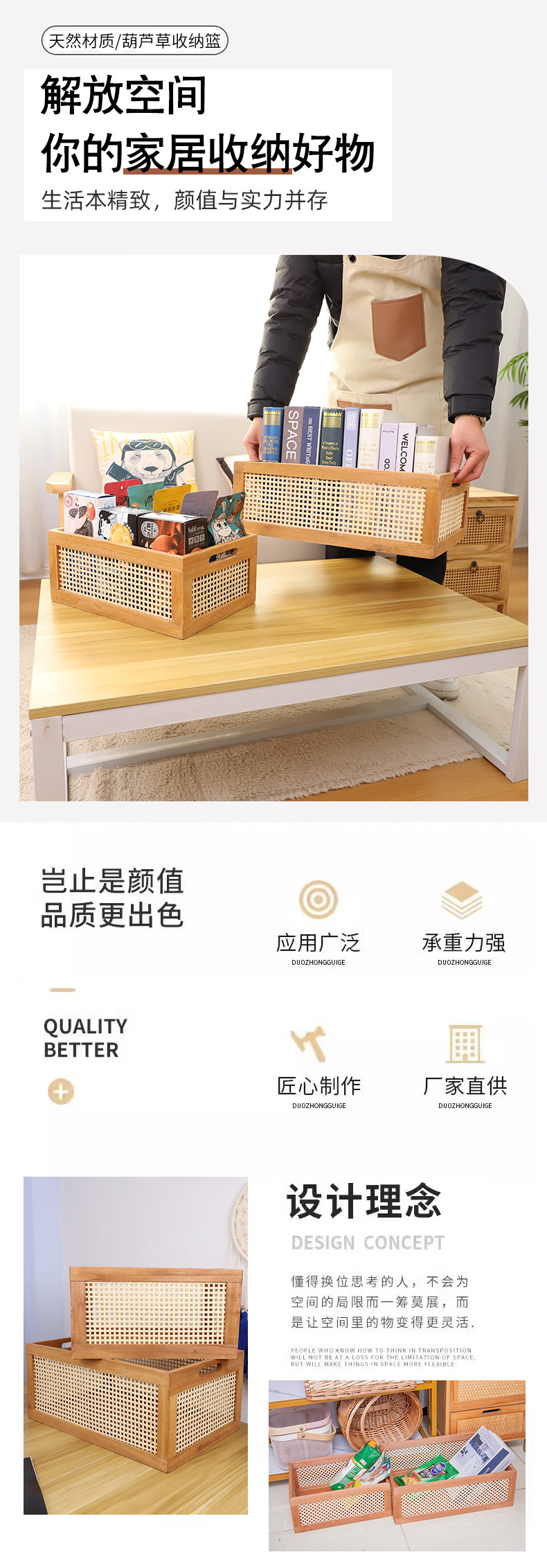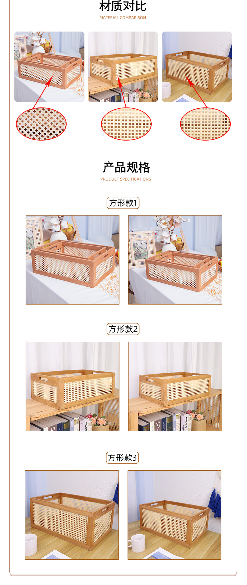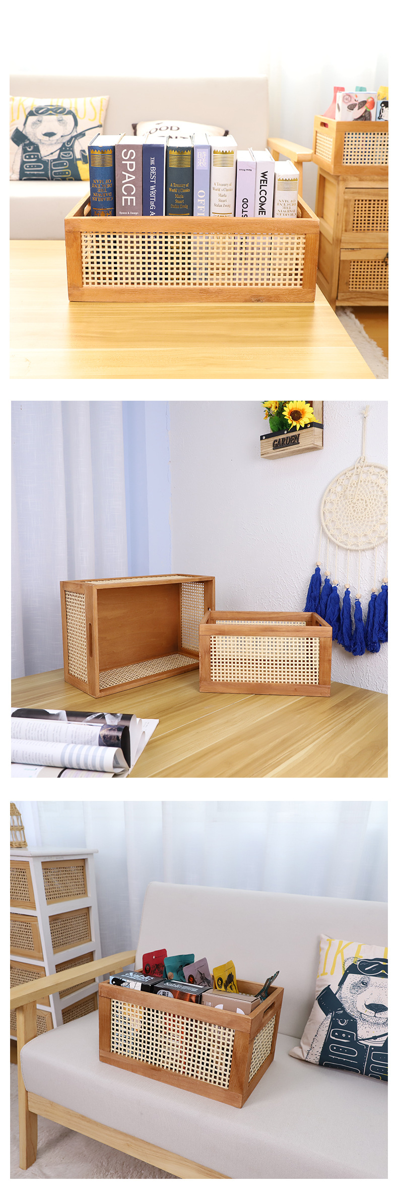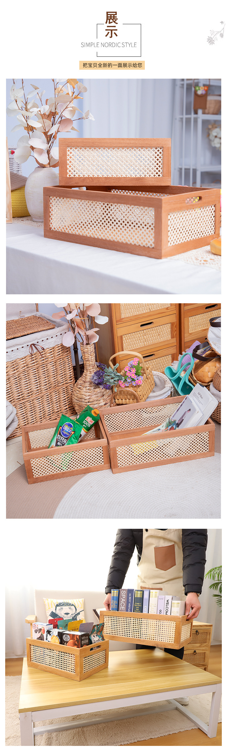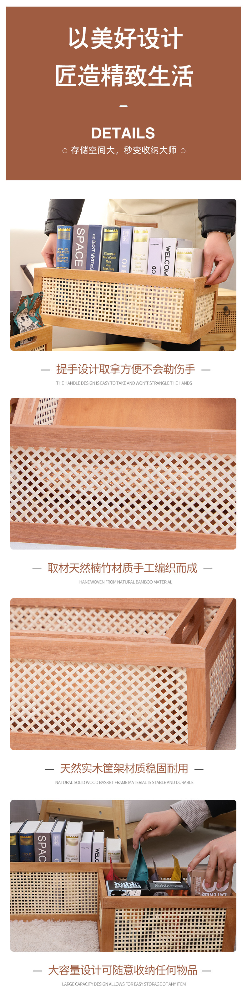 Cesta de almacenamiento de bambú, cosméticos para el hogar, bocadillos, almacenamiento de artículos diversos, acabado de escritorio de madera retro, canasta de almacenamiento, canasta de almacenamiento