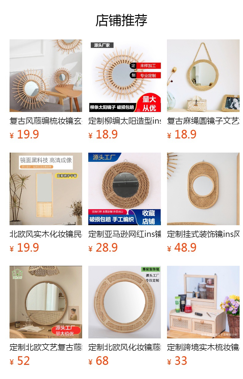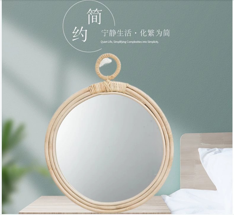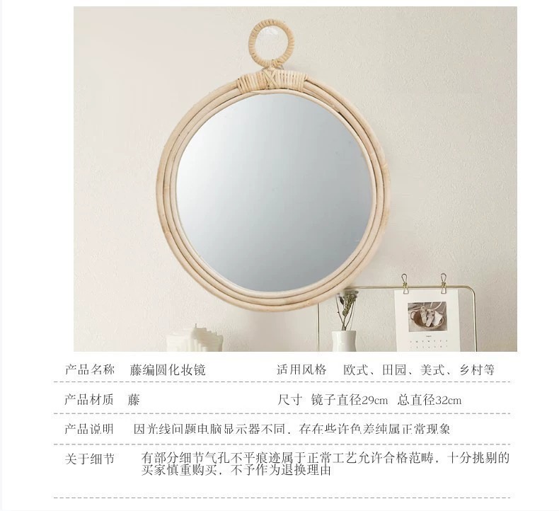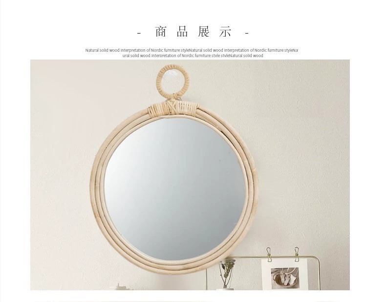 Espejo de maquillaje de ratán redondo nórdico transfronterizo Espejo de pared tejido a mano de estilo ins Espejo de decoración de pared de la casa de familia de entrada