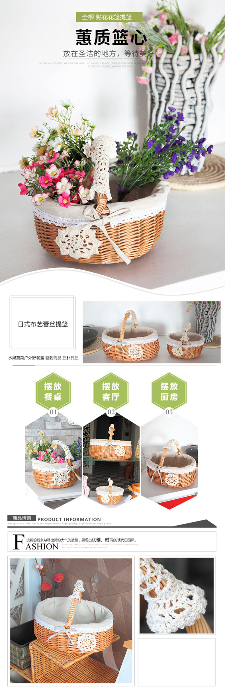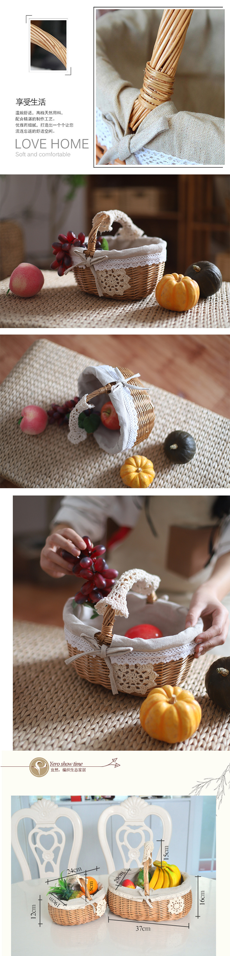 Cesta de almacenamiento de mimbre de ratán cesta de verduras cesta de huevos regalo portátil cesta de picnic cesta de frutas pequeña cesta de bambú tejida cesta de flores
