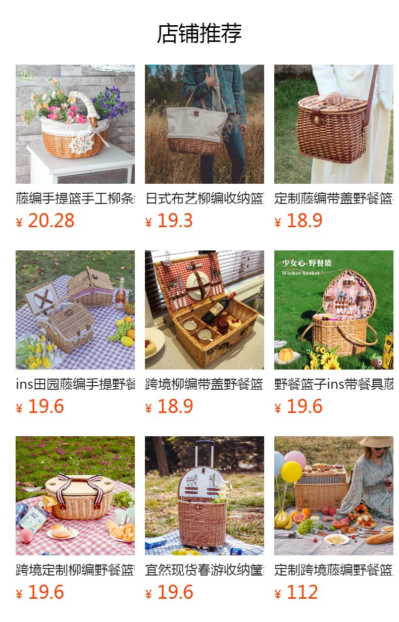 En stock ratán cesta acampar al aire libre caja de almacenamiento picnic cena con tapa vajilla portátil sauce picnic cesta