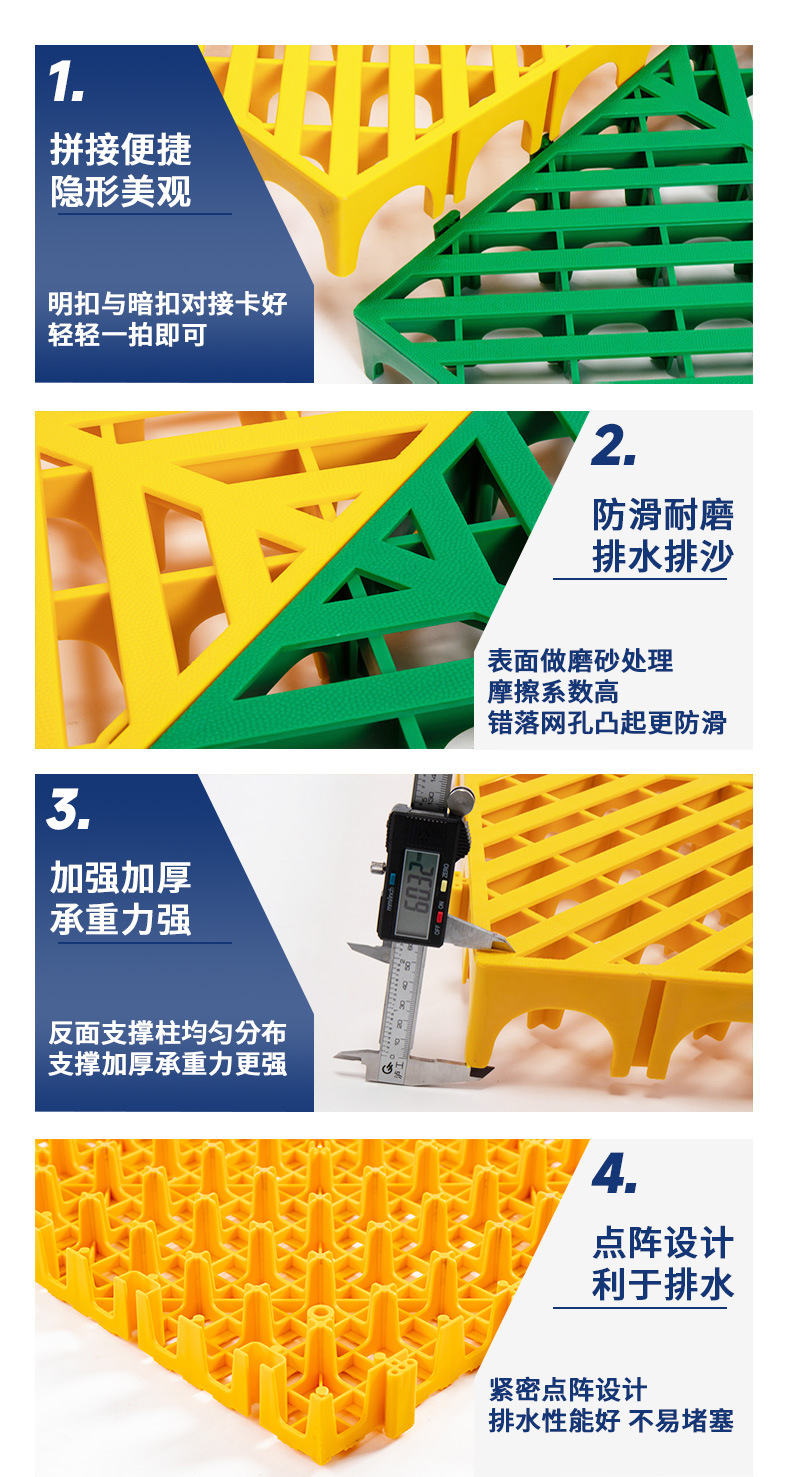 Rejilla de piso de la sala de lavado de autos, taller de belleza de automóviles, tablero de rejilla de drenaje, ranura de excavación gratuita, piso de empalme de rejilla de plástico al por mayor
