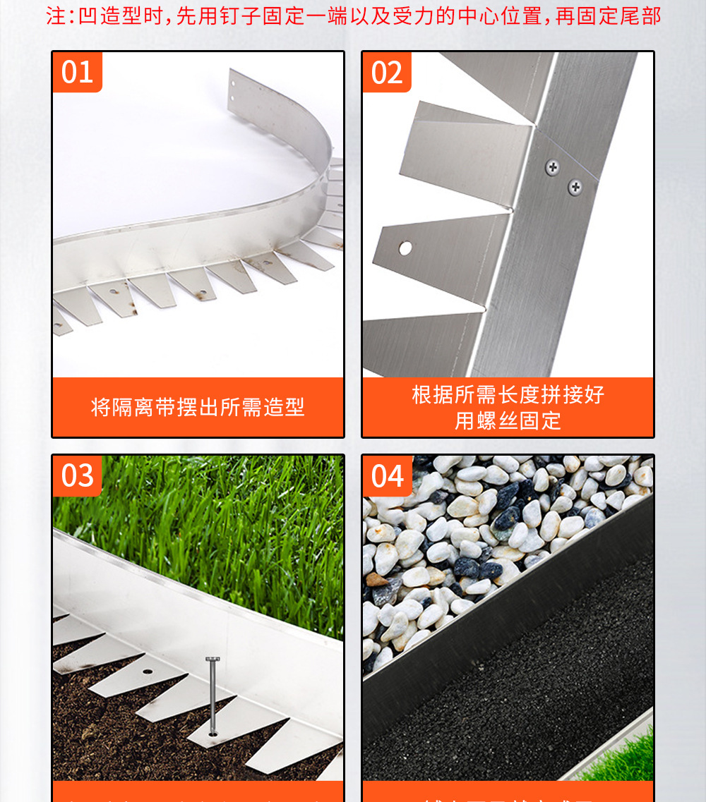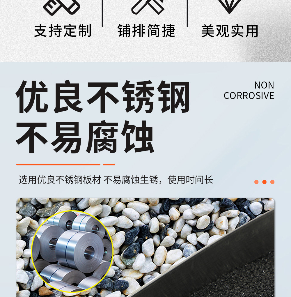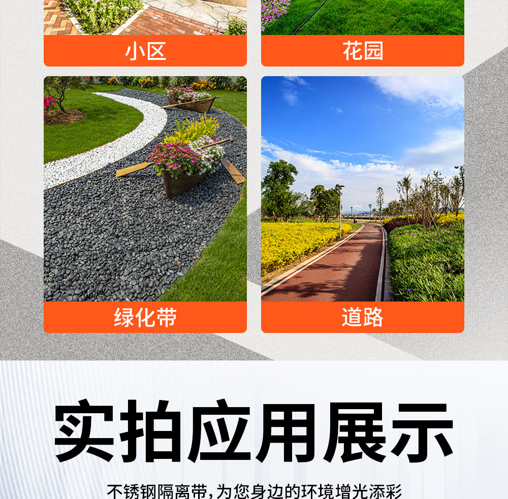 Jardín de acero inoxidable tira de borde de cierre cinturón de separación de hierba cinturón de separación de anillo de árbol de contención de suelo verde cinturón de aislamiento de hierba y piedra espesado