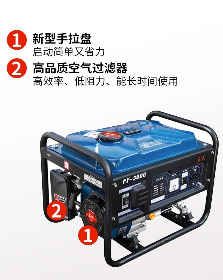 Dongcheng generador de gasolina pequeño generador de cobre puro doméstico al aire libre monofásico 220V trifásico 380V portátil