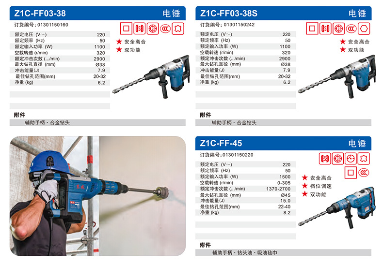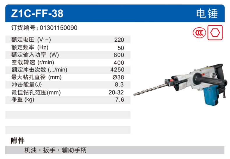 Dongcheng martillo eléctrico Z1C-FF03-38S Wukeng hexagonal grado industrial martillo eléctrico de doble propósito martillo eléctrico de hormigón perforación de hormigón