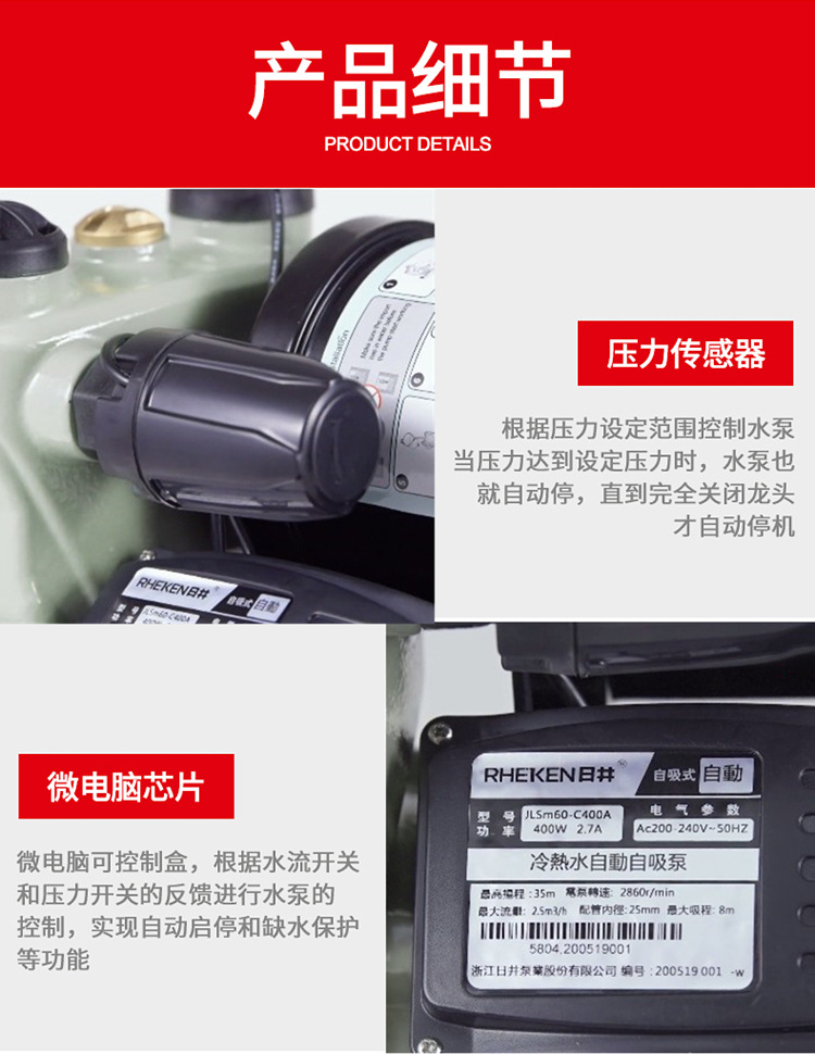 Bomba de agua de pozo japonés, bomba autocebante automática doméstica, cubierta de lluvia, calentador de agua solar, bomba de refuerzo, torre de agua, agua del grifo más