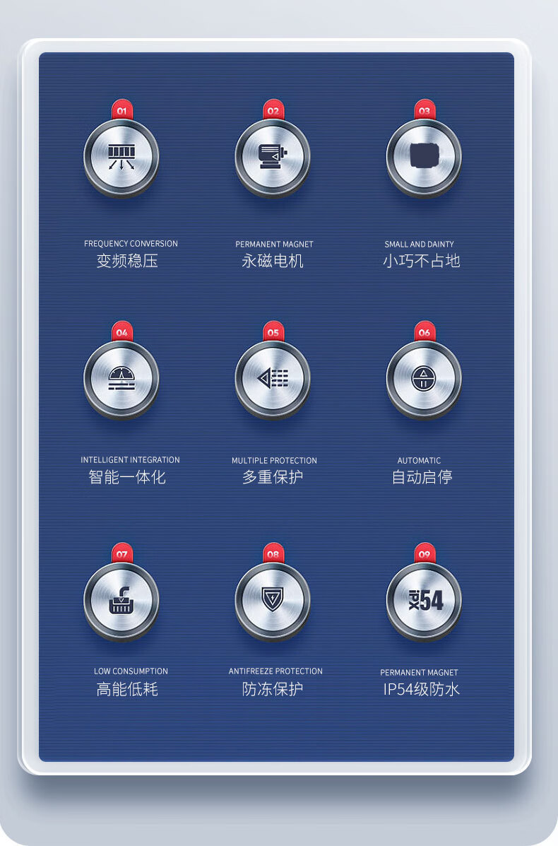 | Especificaciones | Bomba de refuerzo de frecuencia variable de imán permanente de 600W R2-30WiFi,Bomba de refuerzo de frecuencia variable de imán permanente de 600W R2-30,Bomba de refuerzo de frecuencia variable de imán permanente de 400W R2-20 |