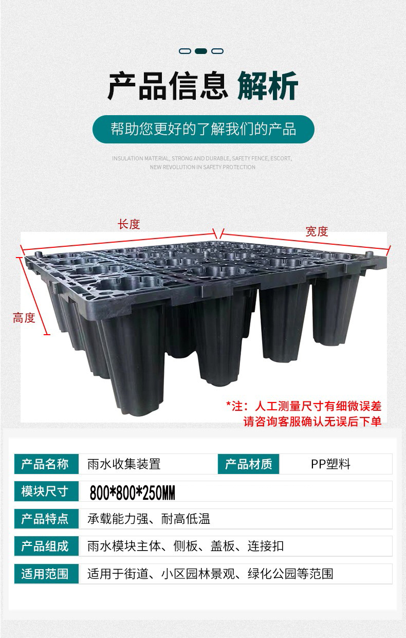 colector de agua de lluvia pp módulo sistema de recolección tanque de regulación esponja depósito urbano reciclaje soporte molde personalizado