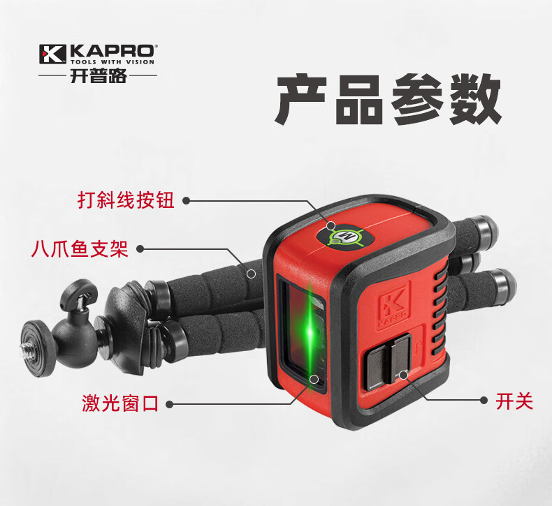 Cape Road (KAPRO) Cape Road nivel láser de alta precisión fuerte luz verde cruz 2 líneas portátil para uso doméstico