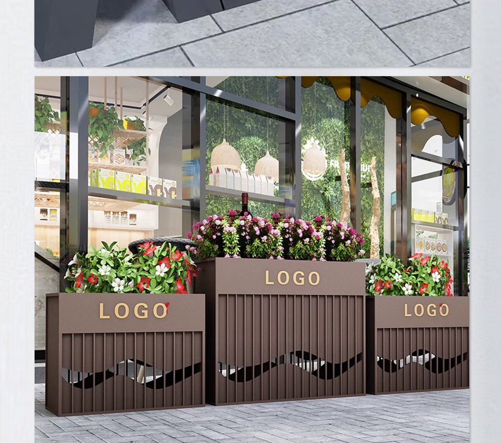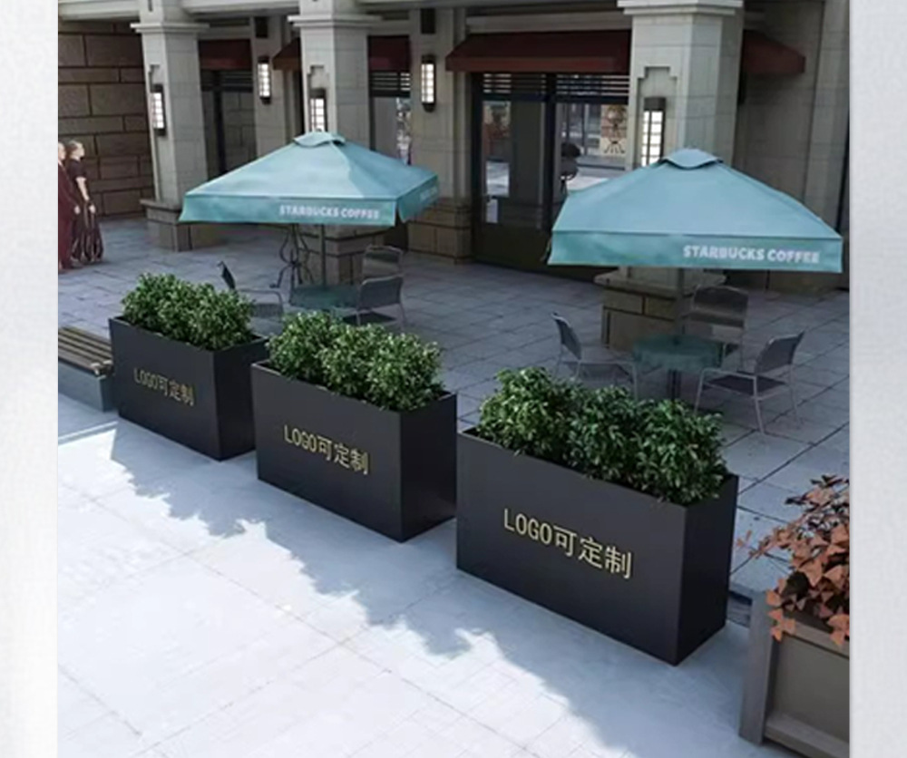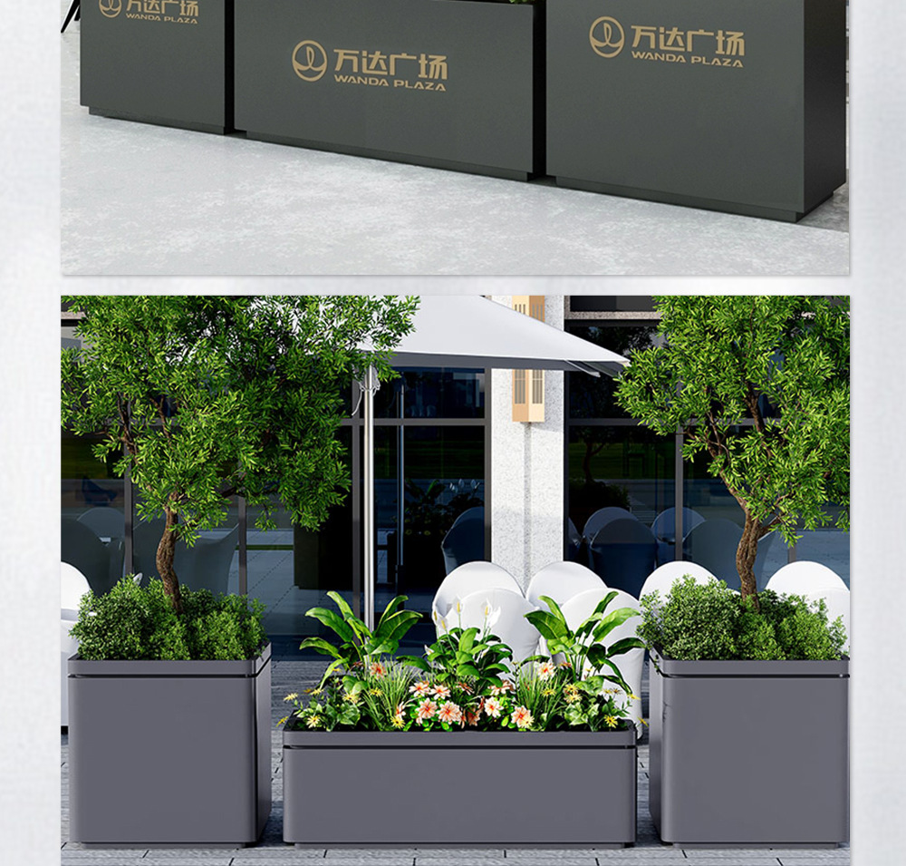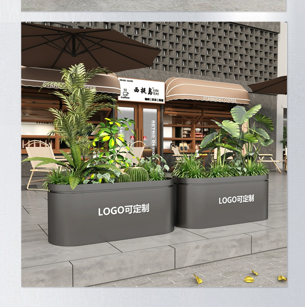 Caja de flores de acero inoxidable forjado combinación de jardín caja de plantación estante de flores comedor partición cama de flores pendulante municipal estanque de flores maceta