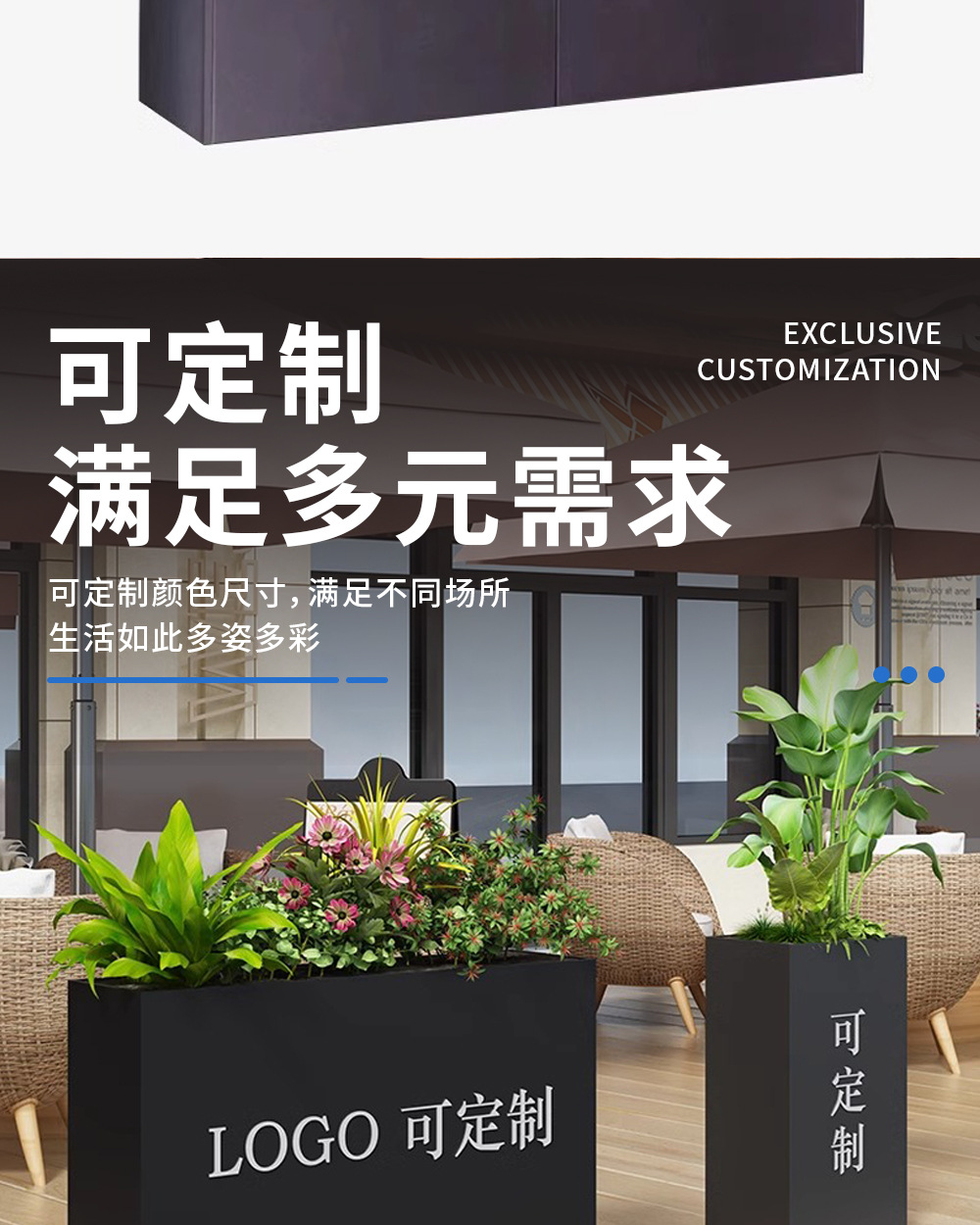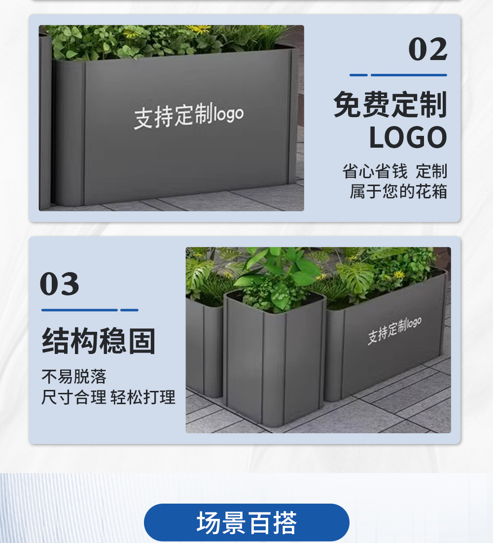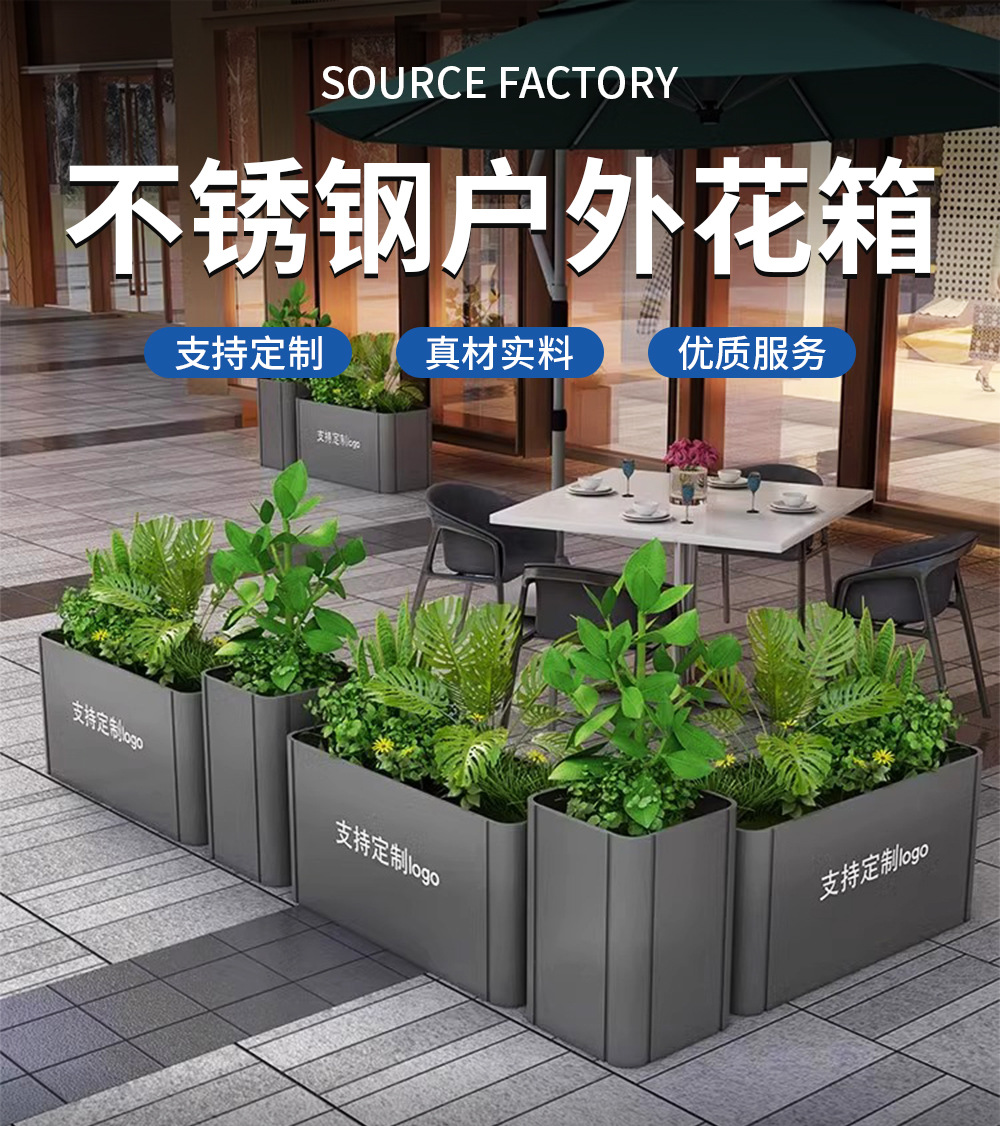 Caja de flores de acero inoxidable forjado combinación de jardín caja de plantación estante de flores comedor partición cama de flores pendulante municipal estanque de flores maceta