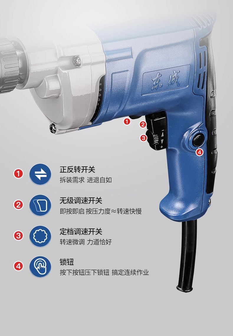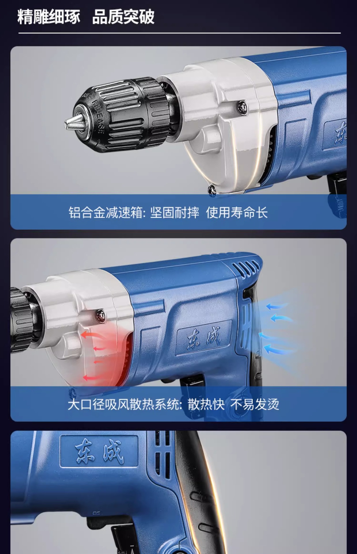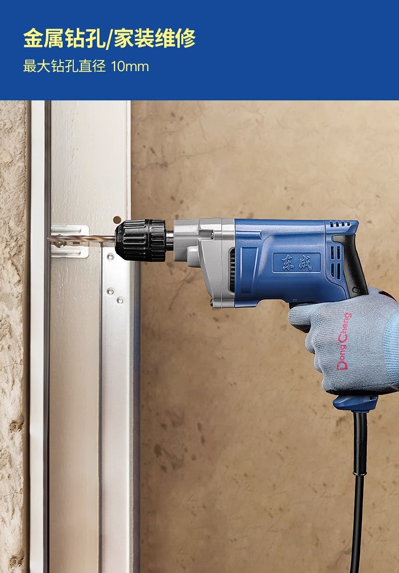 Dongcheng taladro eléctrico taladro eléctrico de mano destornillador eléctrico enchufe doméstico multifuncional taladro eléctrico pequeño 220V grado industrial