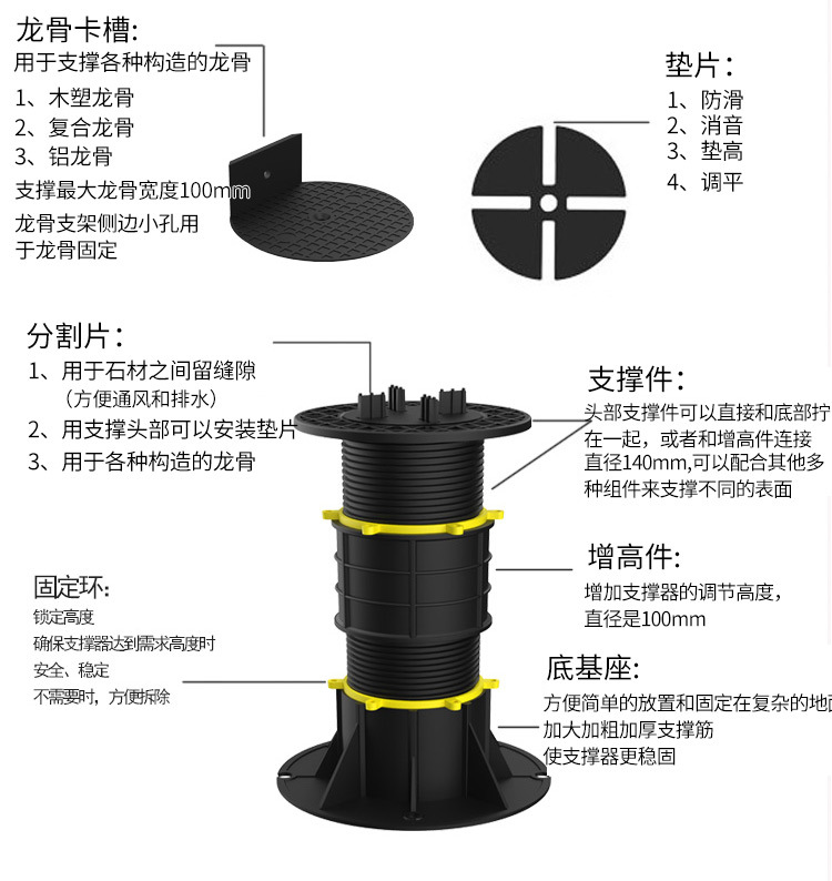| Modelo de la especificación | 70-110mm,110-150mm,120-170mm,120-210mm,230-265mm,230-325mm,330-425mm,210-300mm,220-360mm,210-340mm,330-460mm,340-510mm,430-615mm,310-490mm,310-530mm,445-700mm,545-800mm,545-900mm,645-990mm,Pieza creciente de altura |