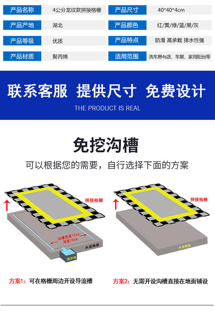 Rejilla para Piso de Lavadero de Autos, 4 cm, Patrón de Dragón, Rejilla de Drenaje sin Excavación, Tapete de Piso de Plástico Encastrable, Rejilla