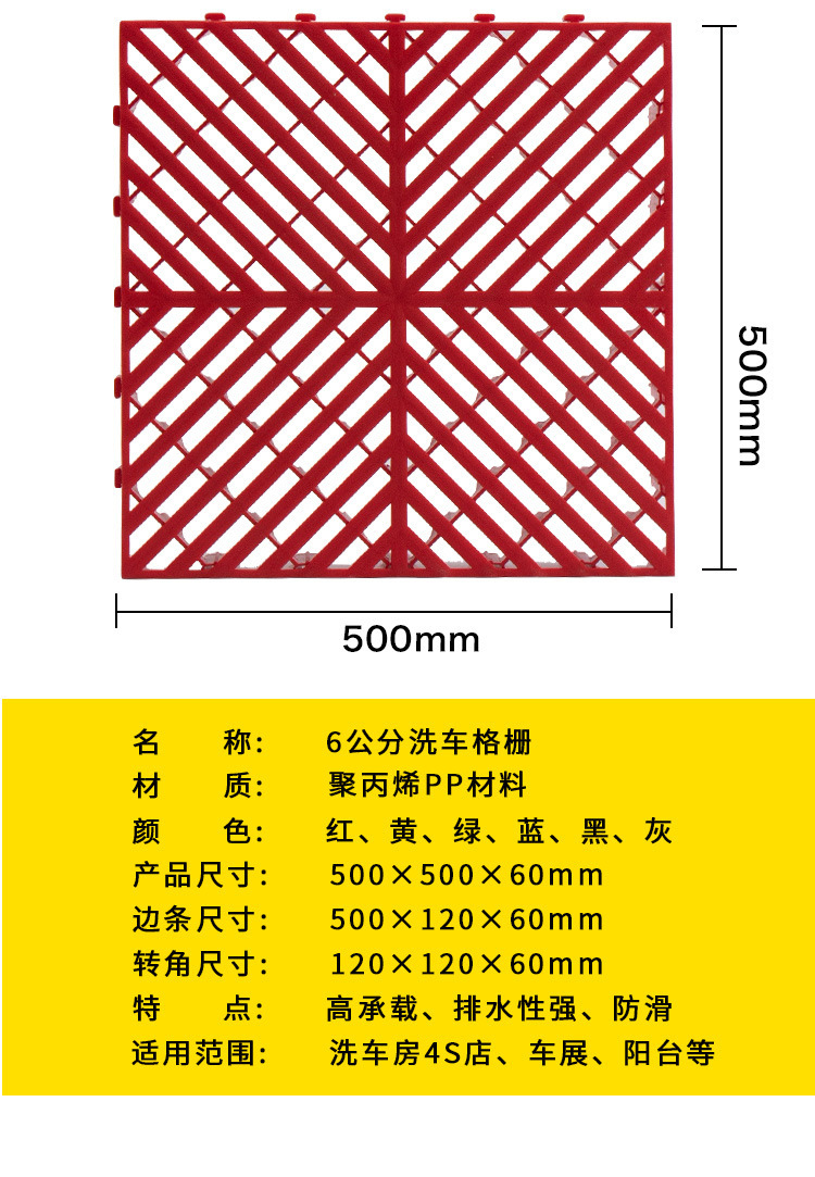 6cm de lavado de coches piso parrilla 4S salón de belleza surco libre drenaje rejilla tablero de empalme de plástico estera del piso