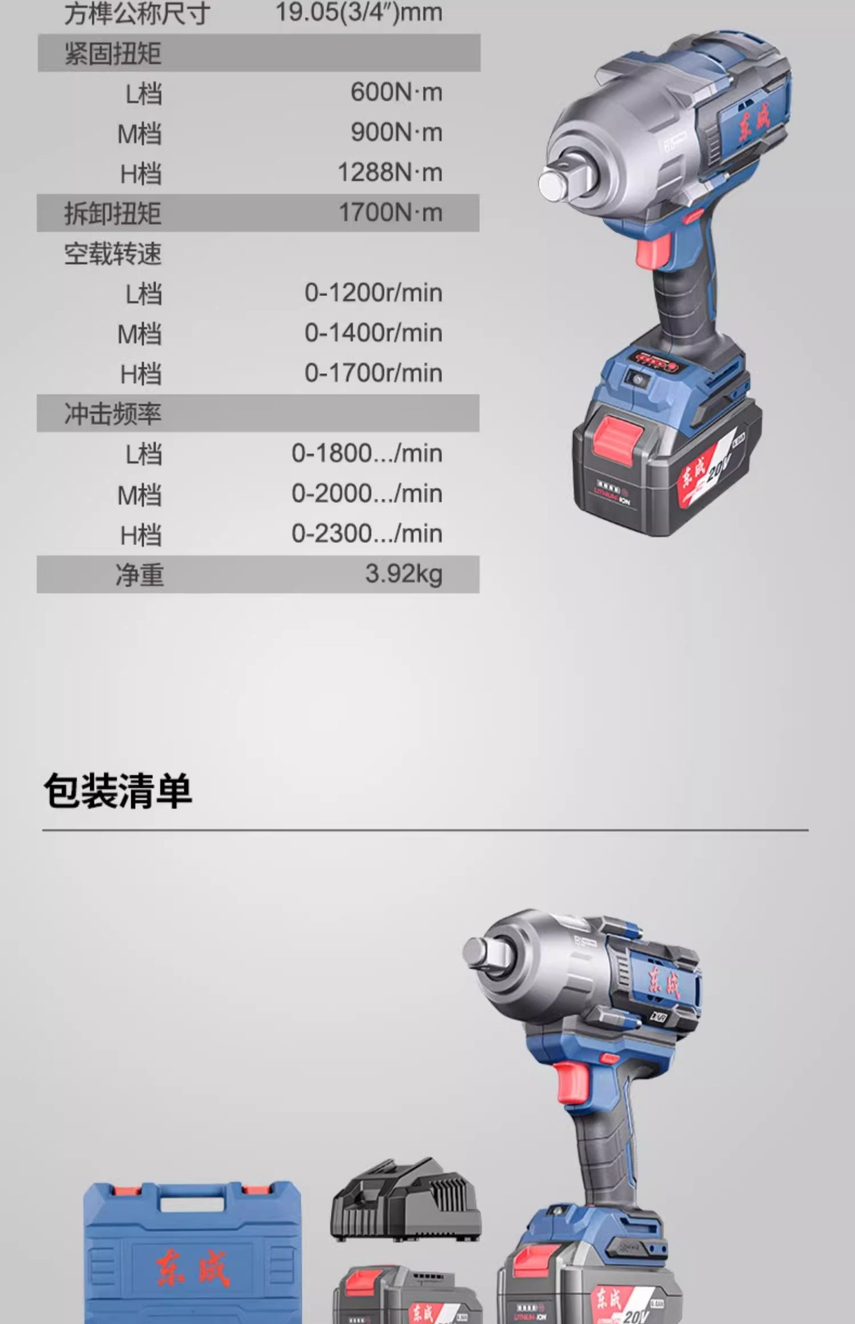 Dongcheng DCPB1218 llave eléctrica sin escobillas carga de litio de alto torque de ingeniería industrial pesada cañón de aire de impacto