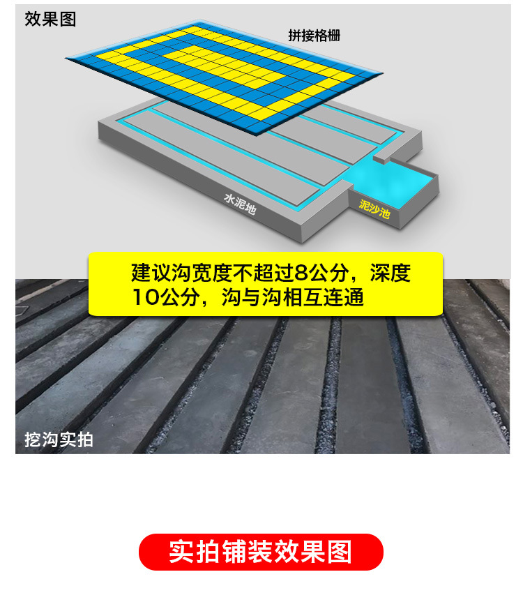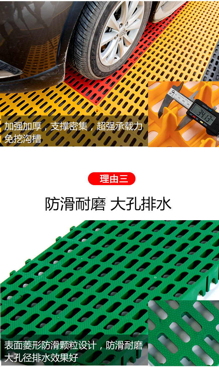 Rejilla de drenaje para pisos de lavado de autos de 5 cm al por mayor, extensible a 40*80 cm, sin excavación, de plástico entrelazado.