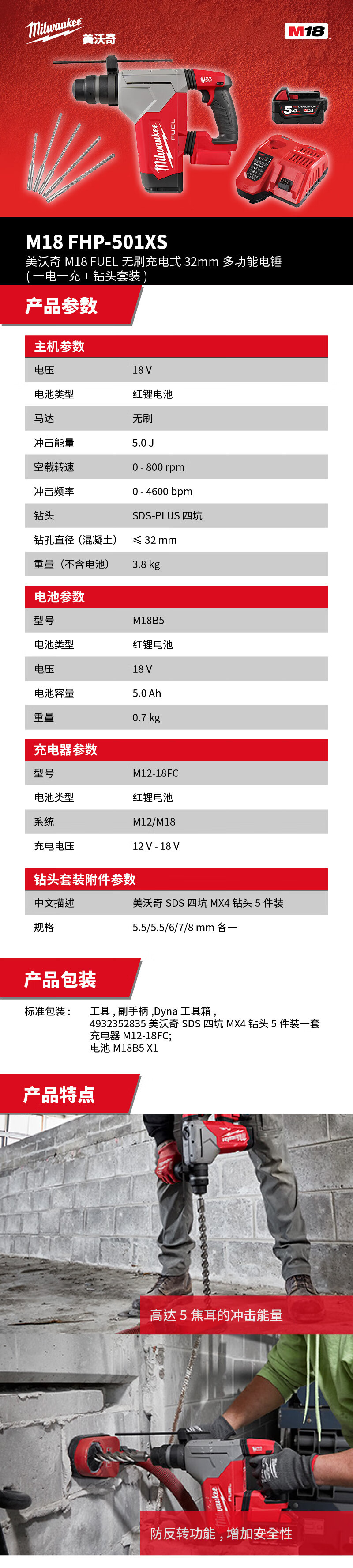 Miwachi Miwachi M18 FHP - 501XS M18 FUEL cargado sin escobillas martillo multifuncional de 32 mm (